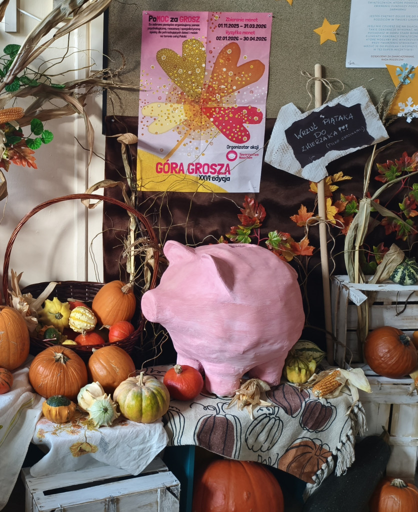 Wśród jesiennych dekoracji ukryła się nasza ŚWINKA SKARBONKA.