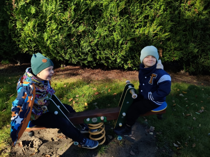 Praca, pracą, ale grupa Mądrych Sówek z przyjemnością korzysta z naszego urokliwego placu zabaw, tym bardziej, że pogoda dopisuje! Była zabawa w kawiarnie, piratów i oczywiście zbieranie kasztanów ...oj uzbieraliśmy ich trochę! Będzie można zająć się ich przeliczaniem, układaniem i segregowaniem