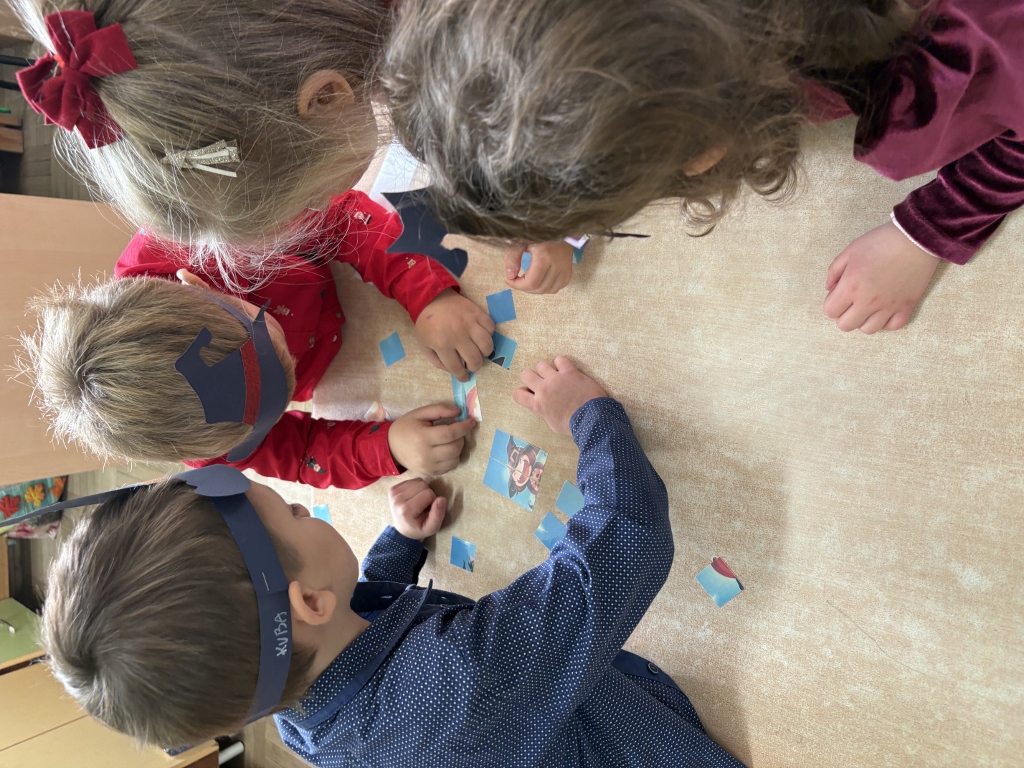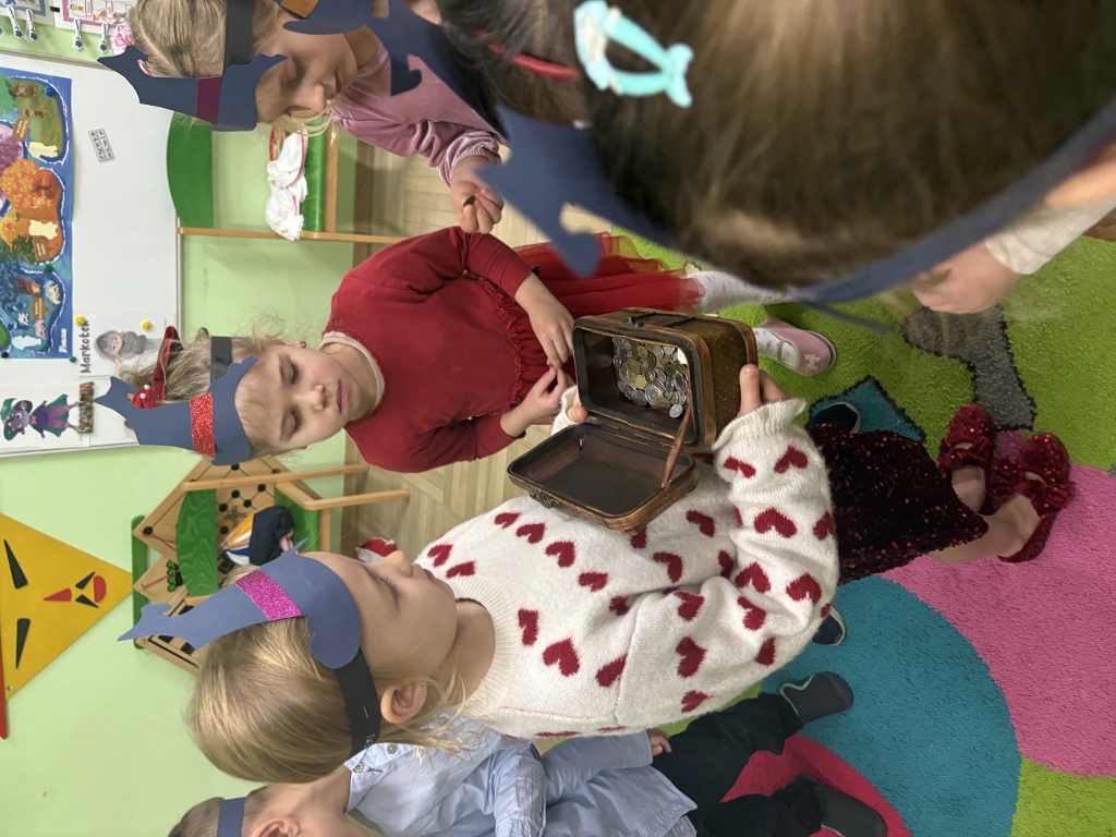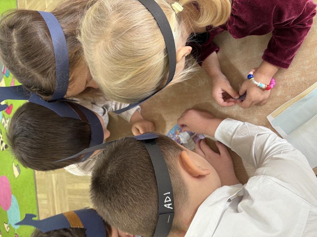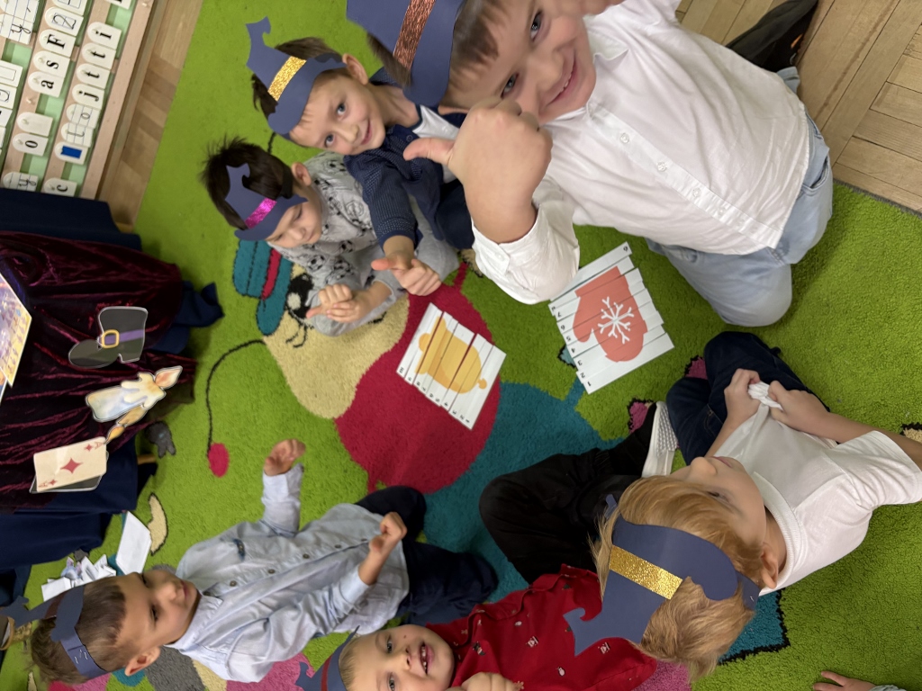Andrzejkowe spotkanie w grupie Mądre Sowy rozpoczęło się od wysłuchania wiersza „Wieczór Andrzejkowy”. Następnie, żeby wróżby się spełniły każde dziecko wrzuciło przez lewe ramię monetę do zaczarowanej studni. Spotkaniu Andrzejkowemu towarzyszyły konkursy, zabawy i wróżby. Wszystko to odbywało się w rytmie muzyki tanecznej. Nie zabrakło również tradycyjnego ustawiania „bucików”. Mądre Sowy chętnie brały udział w zabawach i wróżbach. Wcześniej oczywiście rozmawialiśmy o tradycjach związanych z Andrzejkami oraz o tym, że naszych wróżb nie traktujemy poważnie – są to tylko zabawy. Dzień ten dostarczył przedszkolakom wielu przeżyć i pozytywnych emocji,a przede wszystkim stał się okazją do rozbudzania dziecięcej ciekawości oraz chęci poznawania tradycji ludowych.