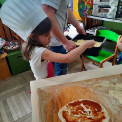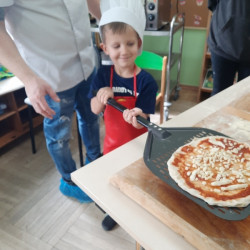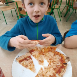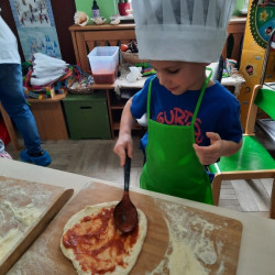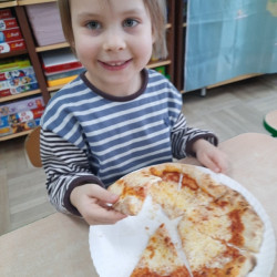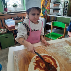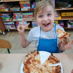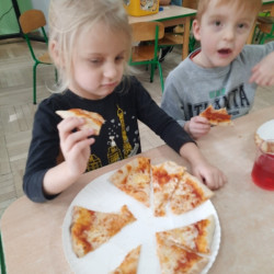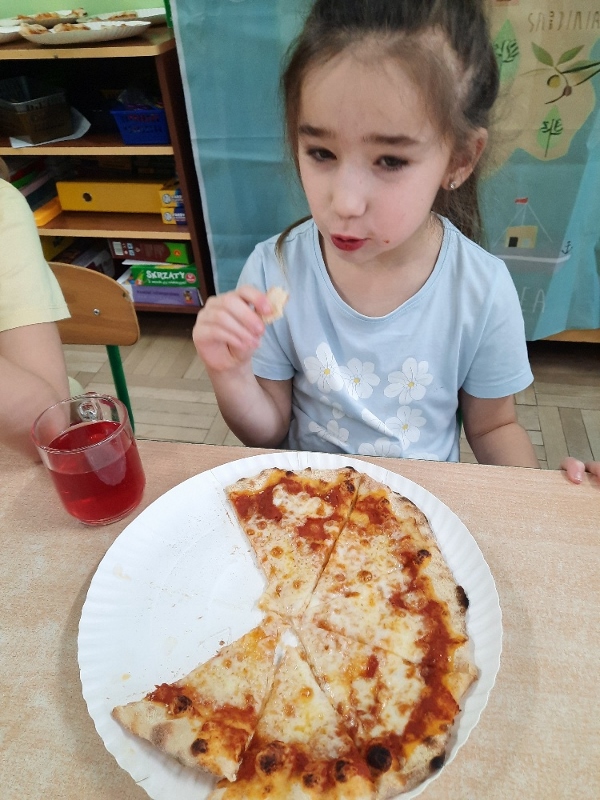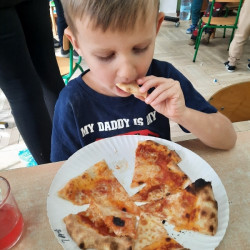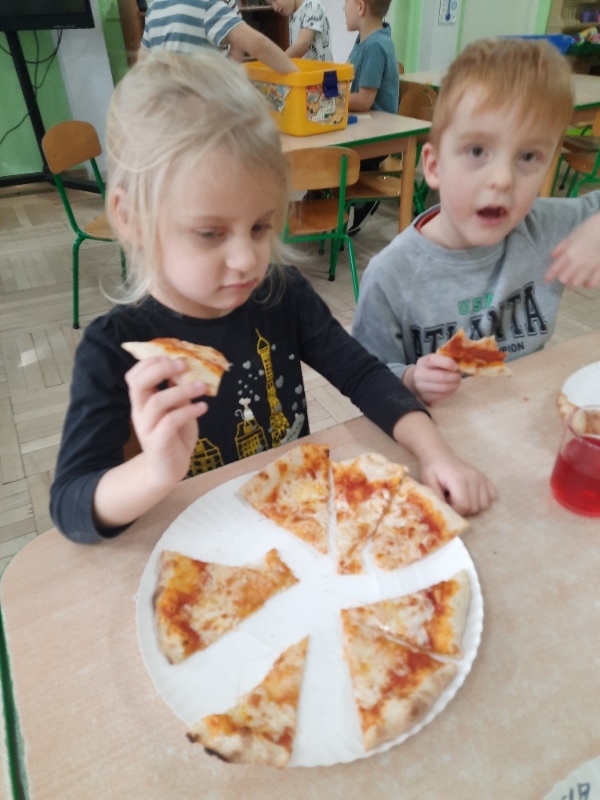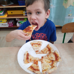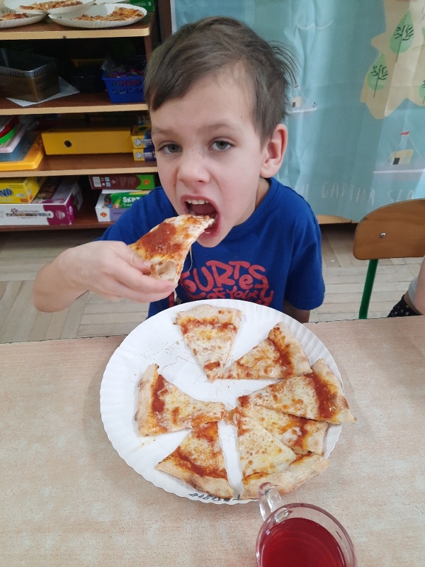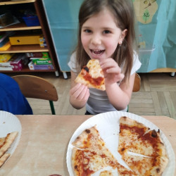 9 lutego na całym świecie obchodzony jest Dzień Pizzy. Tego dnia w naszej grupie odbyły się warsztaty wytwarzania pizzy. W roli pizzaiolo wystąpił tata Ani, który jest Włochem. Podczas zajęć dowiedziały się, z jakiego kraju pochodzi pizza, oraz jakich składników potrzebujemy do jej przygotowania. Przedszkolaki miały okazję zobaczyć jak powstaje prawdziwa włoska pizza, a następnie same zamieniły się w małych pizzaolo i samodzielnie przygotowały swoje pizze. Warsztaty zakończyły się konsumpcją własnego wypieku. Każdy uczestnik warsztatów otrzymał dyplom oraz naklejkę. Dzień ten upłynął w bardzo miłej i radosnej atmosferze.