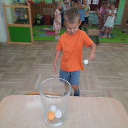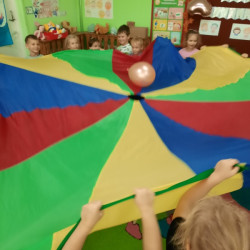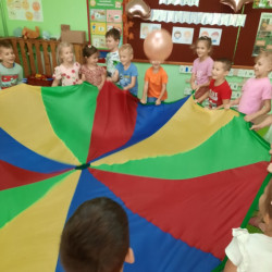 Corocznie 20 września obchodzimy Ogólnopolski Dzień Przedszkolaka. W tym roku święto to przypadło w sobotę, dlatego też Mądre Sowy świętowały dopiero w poniedziałek 22 września. Muzyka, gwar i śmiech rozbrzmiewały od samego rana. Po śniadaniu na przedszkolaki czekało wiele aktywności. Wśród nich znalazły się zabawy z chustą animacyjną przy utworach muzycznych dla dzieci. Były zawody drużynowe, poruszanie się po sali zgodnie ze wskazaniami strzałek. Było magiczne pudło niespodzianek. Dzieci za pomocą zmysłu dotyku odgadywały nazwy ukrytych przedmiotów. Nie zabrakło też pamiątkowych dyplomów i medali.