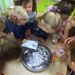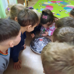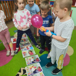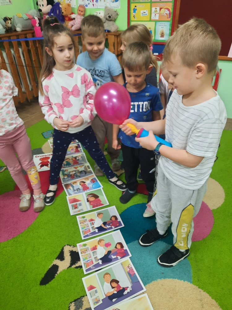 Dzieci z grupy Mądre Sowy poznały kolejnego bohatera innowacji „Czuciaki z krainy Emocji. W czwartek odwiedziły wyspę złości zamieszkałą przez Gniewka. Podczas zajęć wysłuchały opowiadania o urodzinach Martynki, podczas których pojawia się Gniewek. Stworek pokazał Martynce, że złość nie jest zła. Ważne jest żeby wyrażać ją w sposób bezpieczny i nie pozwolić aby ta złość w nas narastała. Gniewek nauczył dzieci jak panować nad wybuchami emocji pokazując im kilka sposobów na rozładowanie złości. Mądre Sowy wykonały doświadczenie z balonem – „Kiedy złość w nas rośnie...- podawały przykłady sytuacji, które wywołują w nich złość, w międzyczasie balon nadmuchiwany był za każdym razem, gdy kolejne dziecko podawało propozycję. Ćwiczenie trwało do czasu aż balon pękł. Kolejnym ćwiczeniem było upuszczanie powietrza z balonu podczas podawania sposobów radzenia sobie ze złością. Dzieci obserwowały jak zmniejsza się ilość powietrza w balonie, a to znaczy, że napięcie się zmniejszyło i dzieci uporały się ze złością. Wykonaliśmy również ćwiczenie z wulkanem. Wspólnie ułożyły historyjkę obrazkową i pokolorowały Gniewka. Na koniec Gniewek wrócił na wyspę złości, a my wiemy już w jaki sposób radzić sobie ze złością nie raniąc innych.