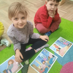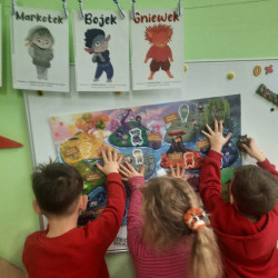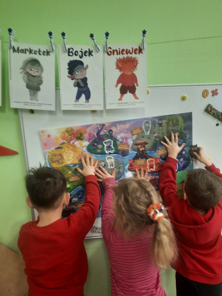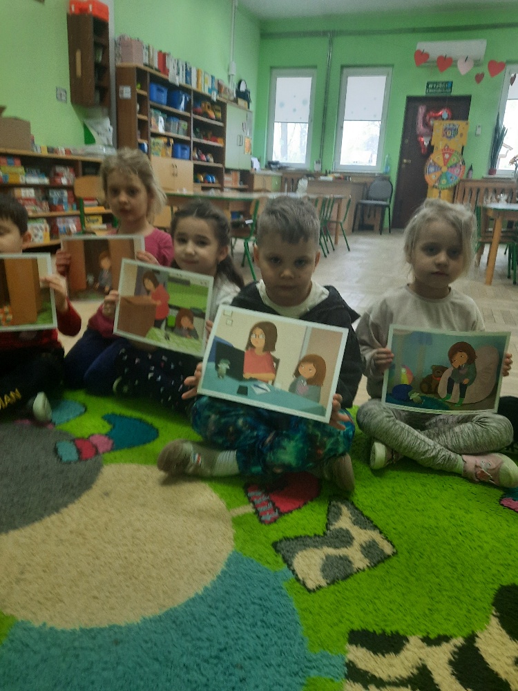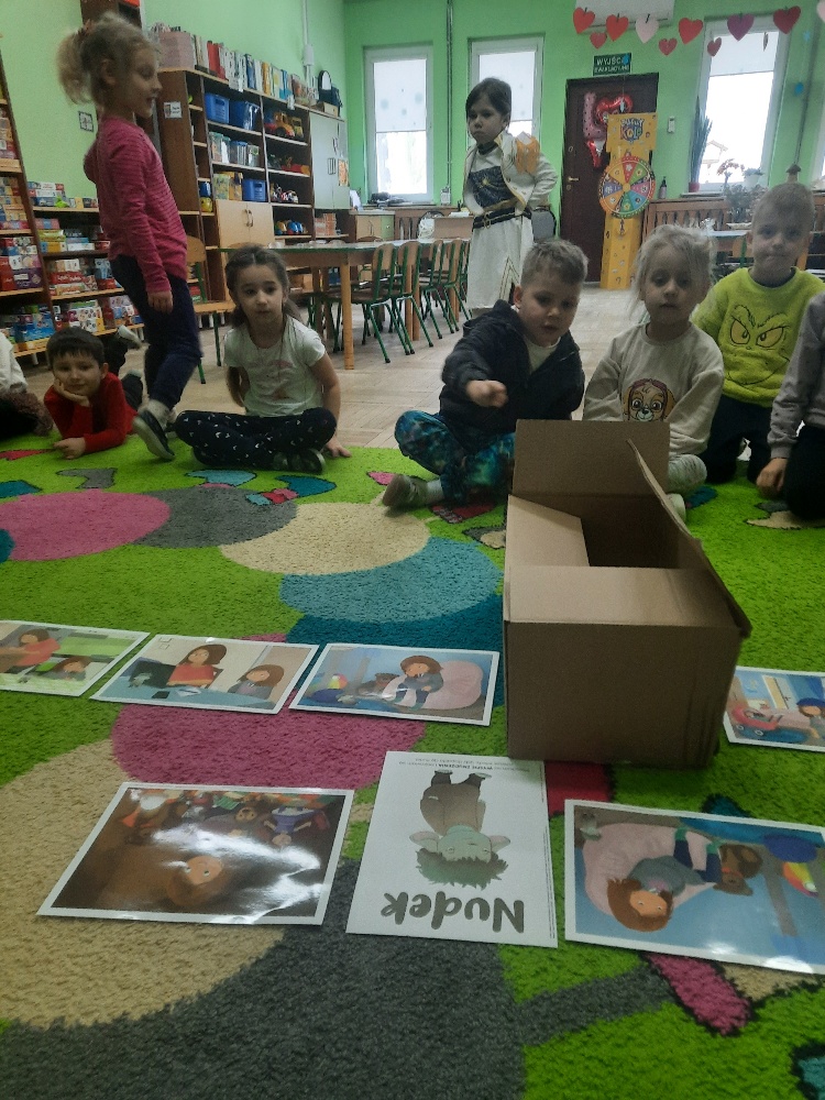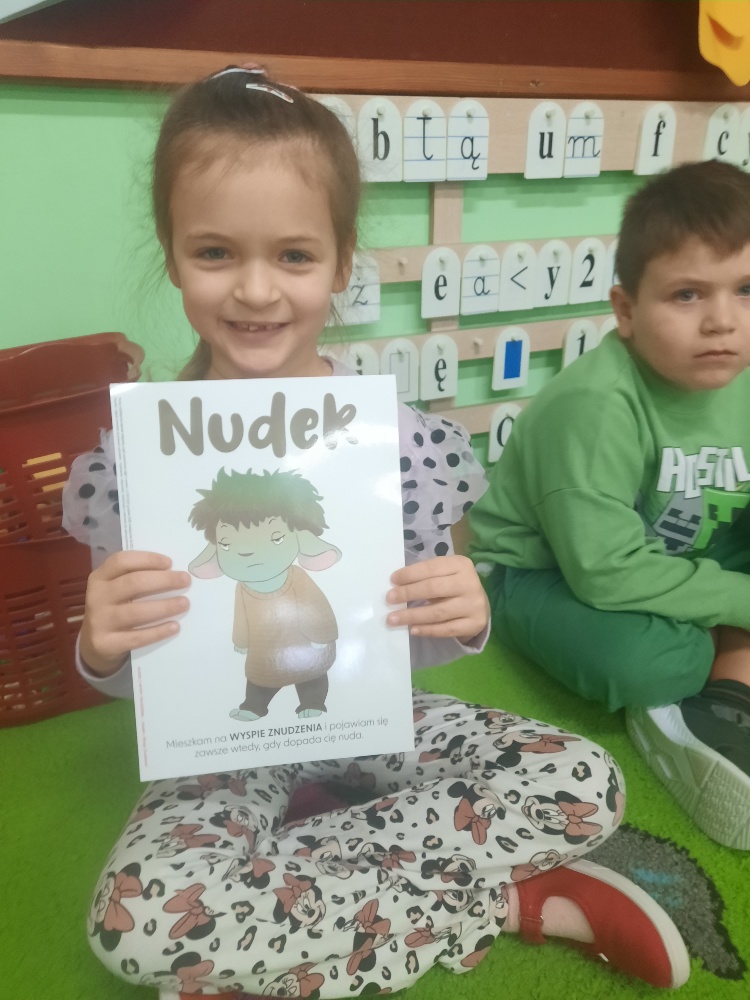 18 lutego dzieci z grupy Mądre Sowy w ramach projektu „Czuciaki z Krainy Emocji” po raz szósty przeniosły się do Krainy Emocji. Tym razem była to wyspa znudzenia. Podczas zajęć poznały historię Anielki, którą podczas deszczowej pogody odwiedził Nudek. Dzięki opowiadaniu dzieci dowiedziały się czym jest nuda. Opowiadanie było punktem wyjścia do rozmów na temat:kiedy dzieci się nudzą? Co wtedy czują? I w jaki sposób można sobie z nudą poradzić? Wiedzą, że nuda to uczucie, które objawia się zniecierpliwieniem, marudzeniem, a nawet zmęczeniem i rozkojarzeniem. Dzieci często reagują na nudę narzekaniem: nie mam co robić lub nie mam się w co pobawić, oczekując, że ktoś dorosły im ten czas zorganizuje. Ale nuda może pełnić bardzo ważną rolę w życiu dziecka -uczy kreatywności. Dziecko, które się nudzi może wymyślać nowe ciekawe zabawy, tworzyć zabawki i prace z „niczego” np. wykorzystując pudełka, włóczkę, kocyki. ….Mądre Sowy bardzo często wykorzystują pudełka po klockach i mięciutkie kocyki do zabaw na dywanie.