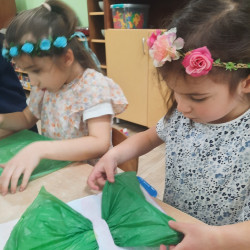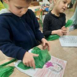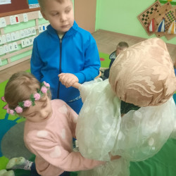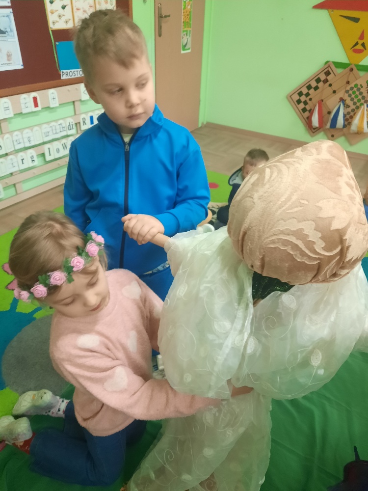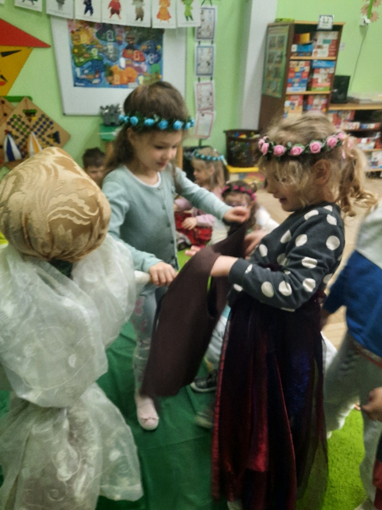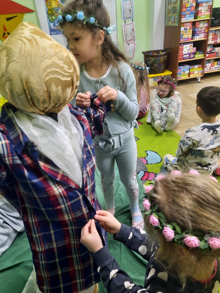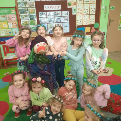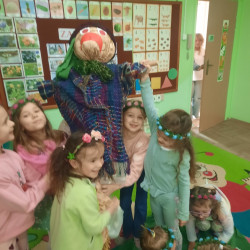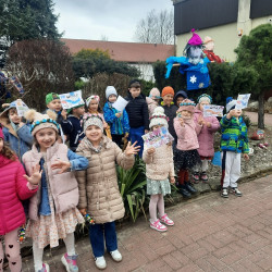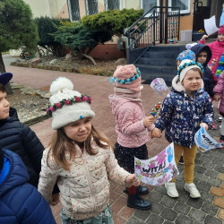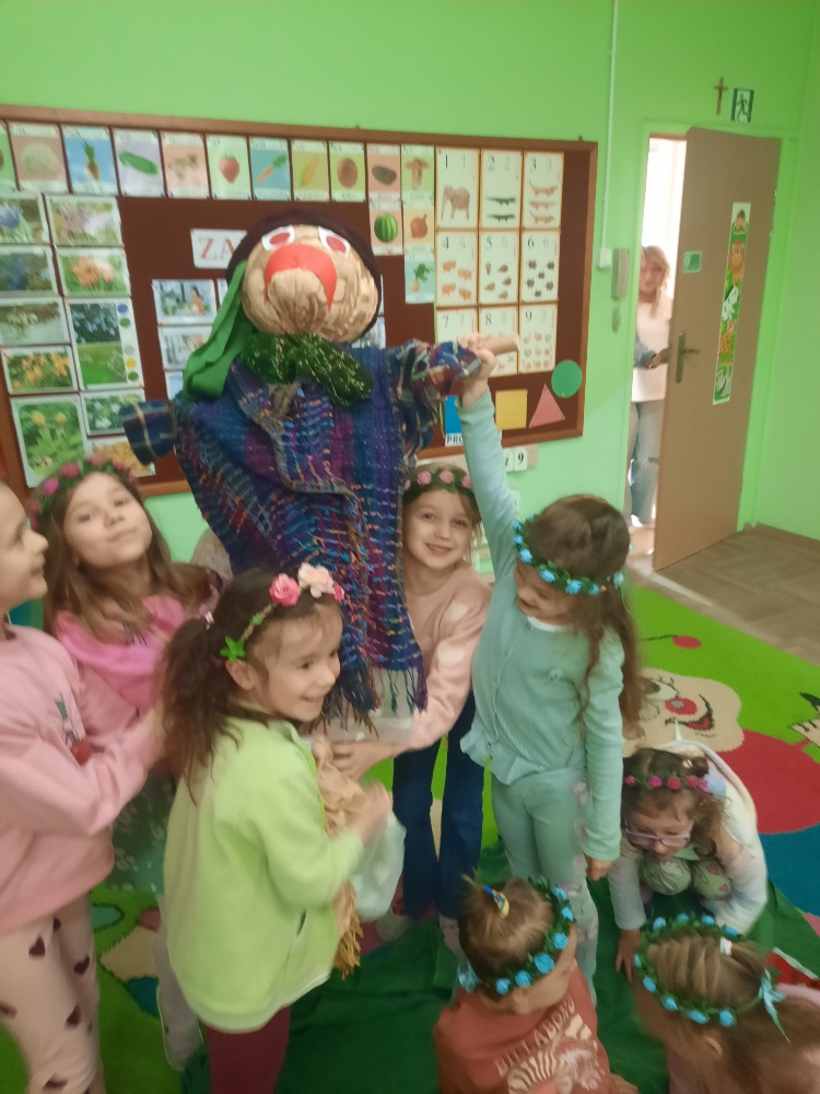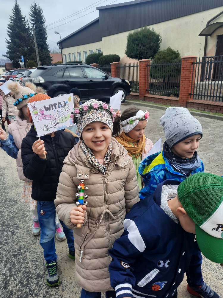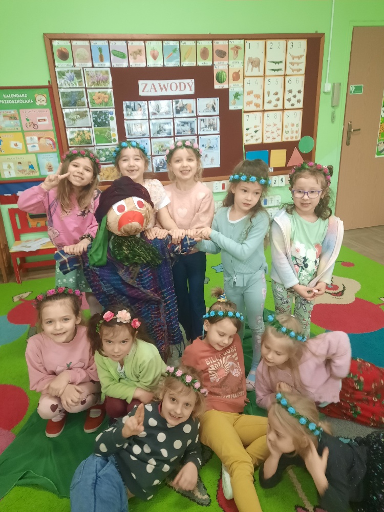 20 marca obchodziliśmy pierwszy dzień astronomicznej wiosny. Jest to bardzo radosne święto. Tego dnia żegnamy zimę i witamy nową porę roku WIOSNĘ. Mądre Sowy już z samego rana z pomocą dorosłych przygotowały zimową kukłę – symbol odchodzącej zimy. Po śniadaniu dziewczynki wystrojone w wianuszki z kolorowych kwiatów, a chłopcy w czapki żabek wzięły udział w wiosennych zabawach. Wysłuchały opowieści o starym zwyczaju topienia kukły – Marzanny. Po zabawach, zagadkach, pracy plastycznej i tańcach przy wiosennych utworach najbardziej oczekiwaną częścią dnia był korowód wokół przedszkola, podczas którego mogliśmy pożegnać zimę wykrzykując hasła: Precz zimo zła. Przedszkolaki z okrzykami radości maszerowały w wiosennym korowodzie z chorągiewkami i instrumentami muzycznymi w towarzystwie Marzanny. W barwnym pochodzie, wróciliśmy na teren przedszkola z nadzieją, że upragniona wiosna na dobre pozostanie z nami. A nasze Marzanny pozostały w ogrodzie i wierzymy w to, że w poniedziałek już ich nie będzie.
