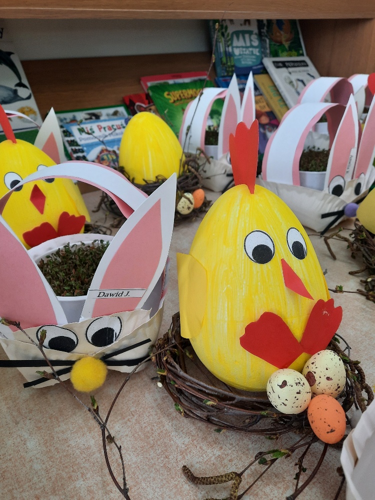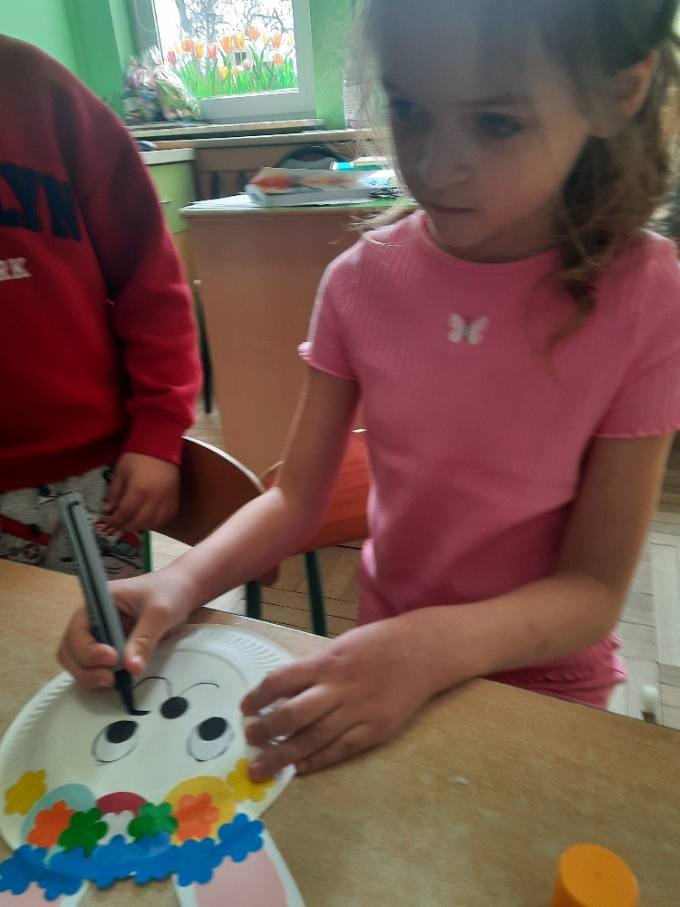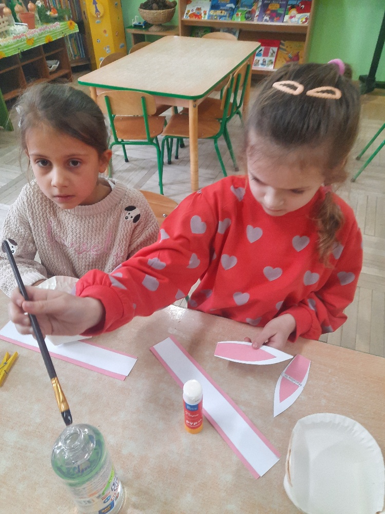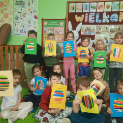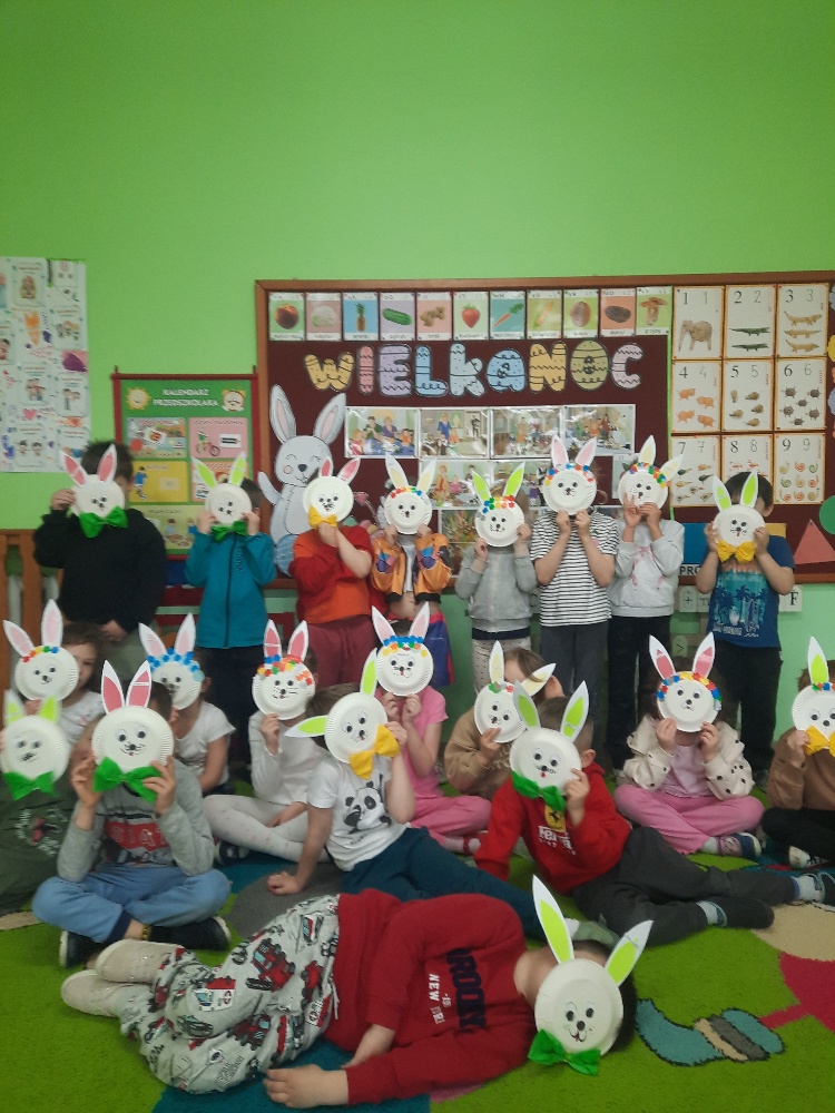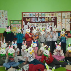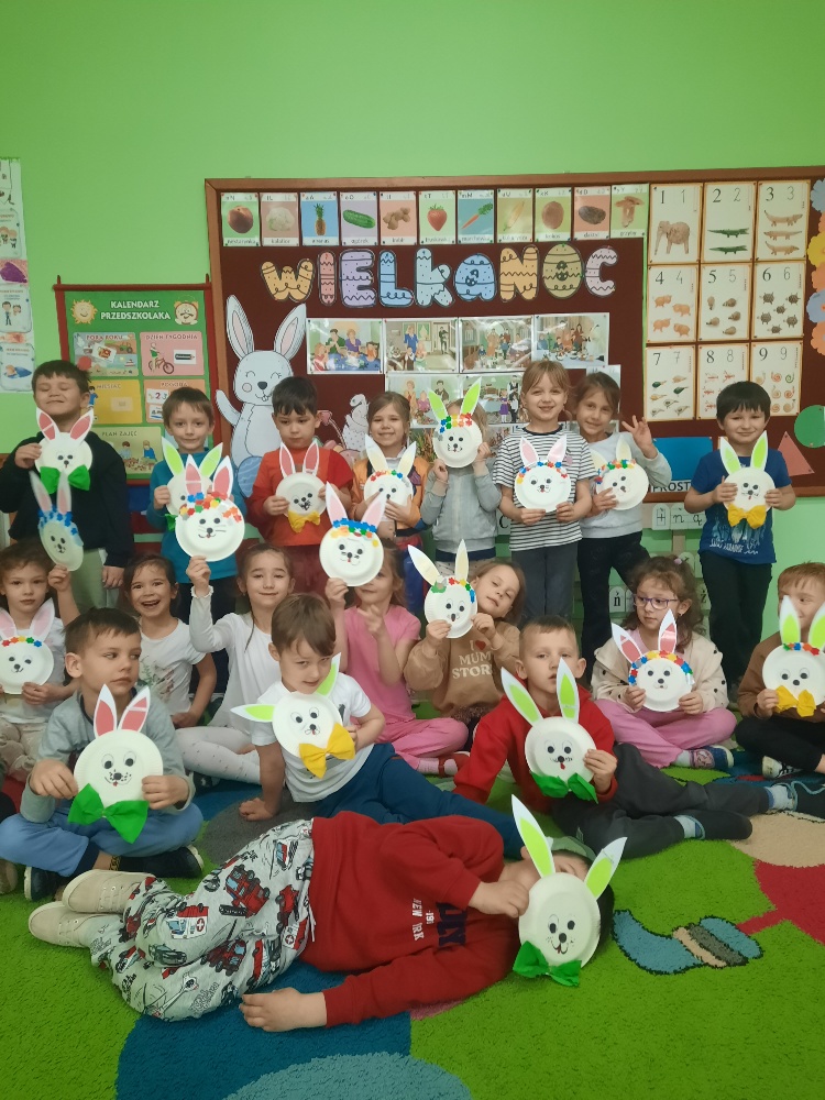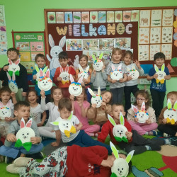 W tygodniu poprzedzającym Wielkanoc przedszkolaki z dużym zaangażowaniem przygotowywały się do Świąt. Poznały polskie zwyczaje i tradycje ludowe związane ze świętami. Przygotowały wiele dekoracji- wyklejały papierowe pisanki, robiły wielkanocne zajączki i kurczaczki, siały rzeżuchę. Składały papierowe koszyczki, piekły babeczki, a w piątek w ramach spaceru wyruszyły na poszukiwanie jajeczek schowanych przez zajączka.