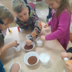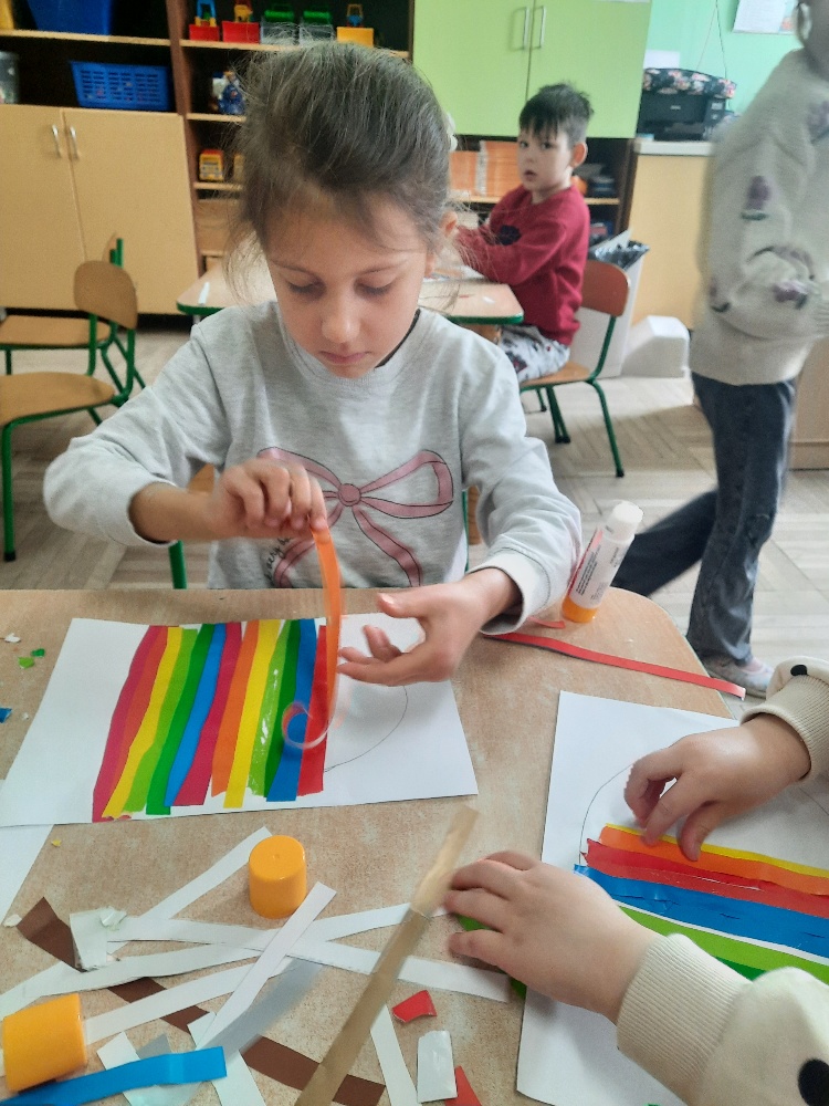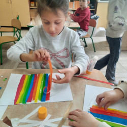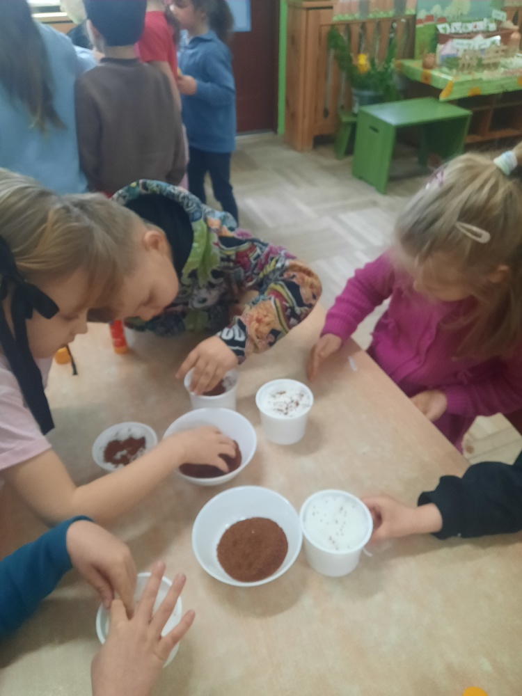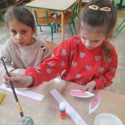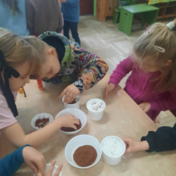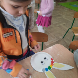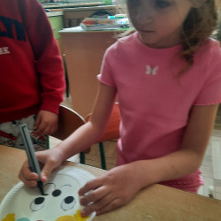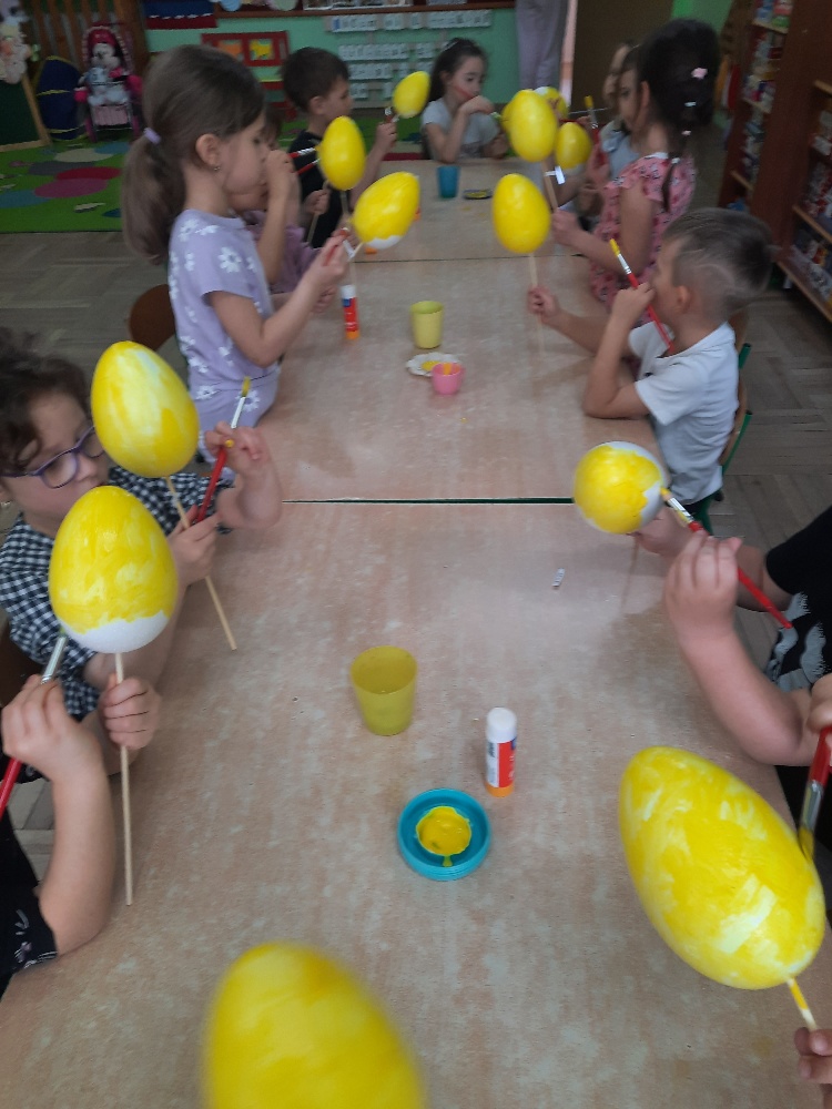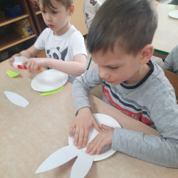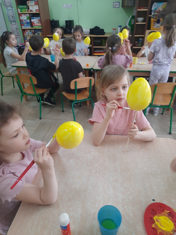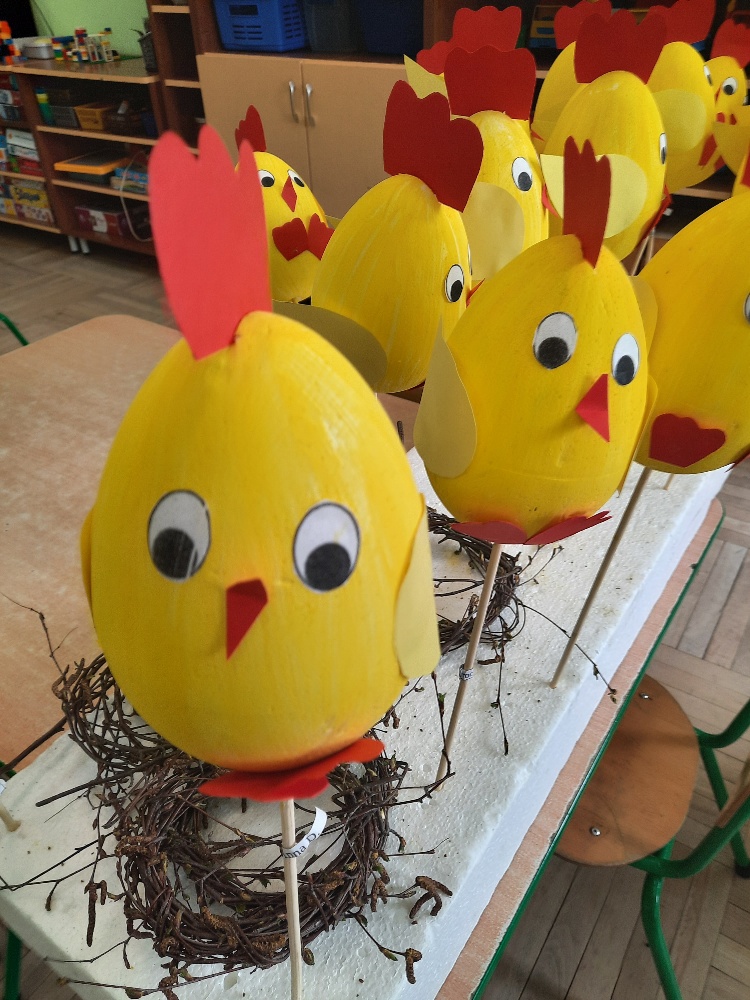 W tygodniu poprzedzającym Wielkanoc przedszkolaki z dużym zaangażowaniem przygotowywały się do Świąt. Poznały polskie zwyczaje i tradycje ludowe związane ze świętami. Przygotowały wiele dekoracji- wyklejały papierowe pisanki, robiły wielkanocne zajączki i kurczaczki, siały rzeżuchę. Składały papierowe koszyczki, piekły babeczki, a w piątek w ramach spaceru wyruszyły na poszukiwanie jajeczek schowanych przez zajączka.