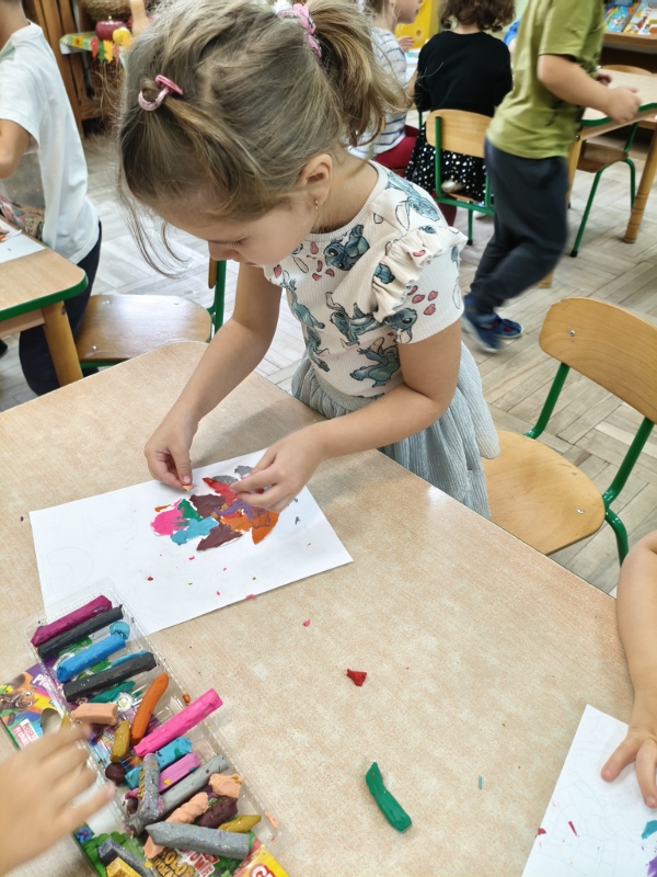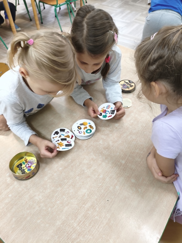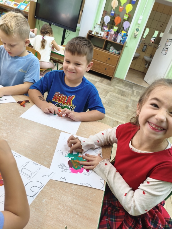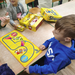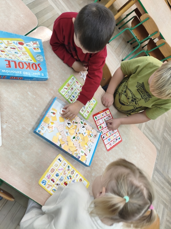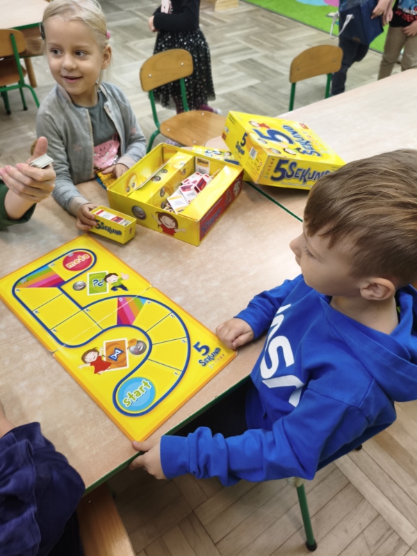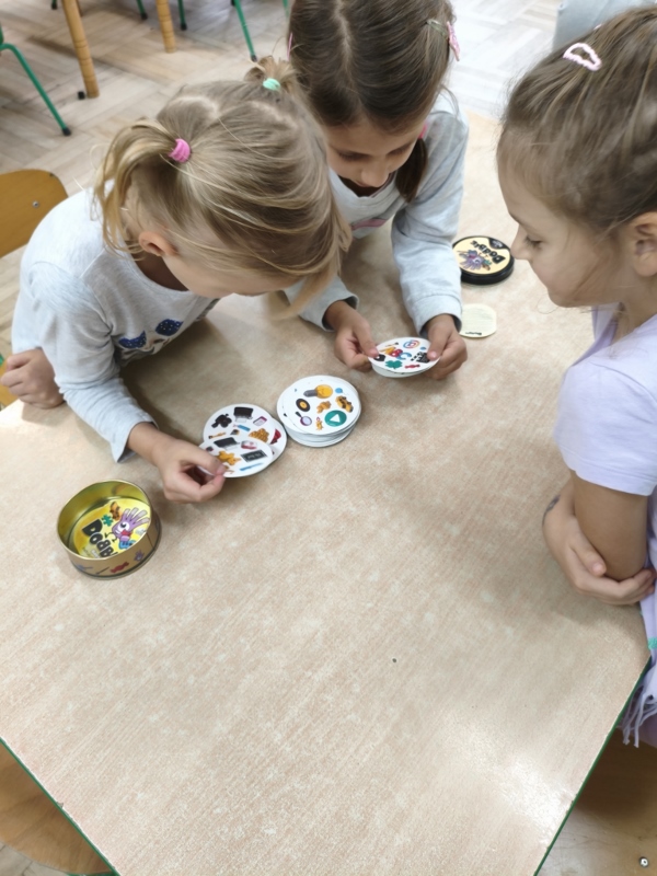 10 października obchodzimy Światowy Dzień Drzewa i nasza grupa również przyłączyła się do uczczenia tego istotnego święta. Przypomnieliśmy sobie, jak duże znaczenie mają drzewa dla nas i dla przyrody. Poznaliśmy ich budowę oraz przeznaczenie. Uczestniczyliśmy w licznych zabawach, by na zakończenie stworzyć własne, jesienne drzewo. Jednak pamiętając, że 10 października to też Dzień Gier Planszowych, rozegraliśmy kilka partii szachów, warcabów i innych przedszkolnych planszówek. Gry planszowe angażują pamięć, uczą planowania, dedukcji oraz liczenia. Są też świetnym sposobem na zabawę i odprężenie.