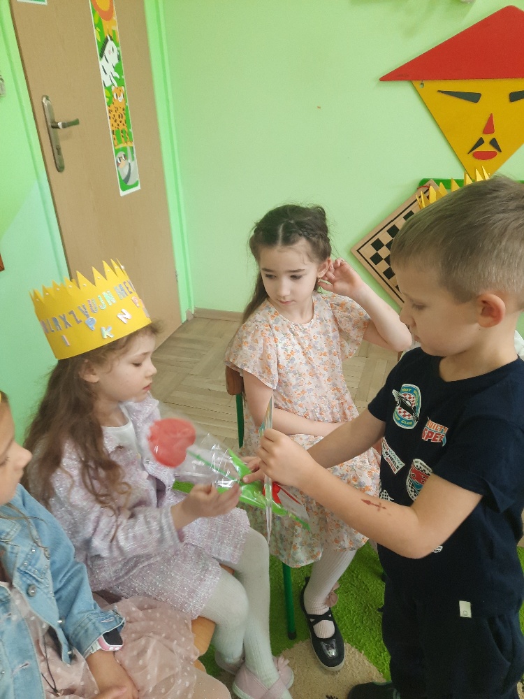 8 marca wszystkie kobiety- te duże i te małe obchodzą swoje święto. W tym szczególnym dniu ( u nas w piątek 6 marca) wszyscy chłopcy przygotowali swoim koleżankom upominki i……..Oprócz kwiatów, dyplomów i prezencików chłopcy złożyli dziewczynkom życzenia i tradycyjnie zaśpiewali „100 lat”. Ze szczególnym zaangażowaniem starali się aby ten dzień był wyjątkowo miłym. Jako mali dżentelmeni wyręczali swoje koleżanki w codziennych obowiązkach. Wiele radości sprawiły przygotowane z tej okazji zabawy min. pokaz mody, znajdź swoją połówkę serca, modowe memory czy wspólne tańce przy muzyce. Uśmiechnięte buzie dziewczynek świadczyły o mile spędzonym czasie. Rodzicom naszych Mądrych Sówek dziękujemy za zorganizowanie prezencików i wiosennych kwiatów dla każdej dziewczynki. Święto Kobiet to doskonały sposób do kształtowania u dzieci nawyków obdarowywania upominkami swoich bliskich.