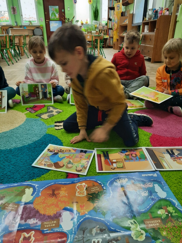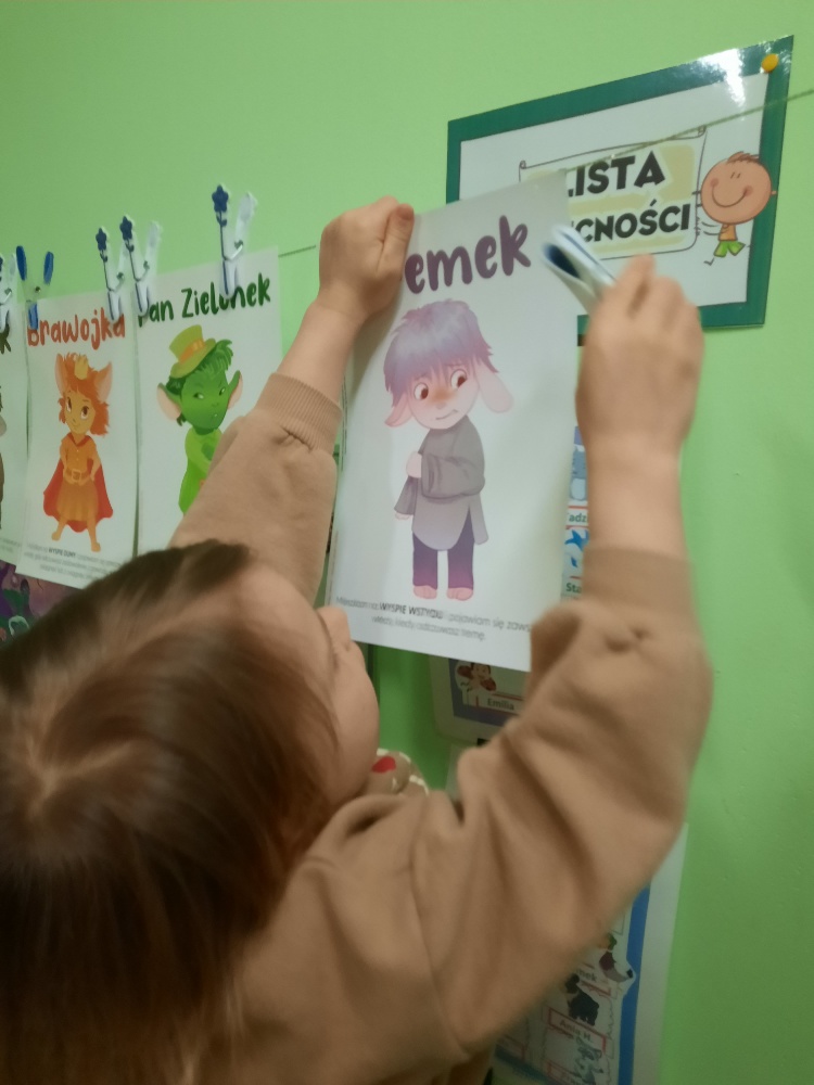 Na dzisiejszym spotkaniu dzieci z naszej grupy poznały nowego Czuciaka – Tremka z wyspy wstydu. Przedszkolaki z uwagą wysłuchały bajki o dziewczynce, która bała się wystąpić w przedstawieniu, a następnie udzielały odpowiedzi na pytania zadawane przez nauczyciela, min. na pytanie: Co sprawiło, że przy Emilce pojawił się Tremek? Tremek pojawił się po to, aby pomóc zrozumieć Emilce i dzieciom, czym jest wstyd i trema. Mądre Sowy przekonały się, że wstyd i trema to podobne uczucia, ale nie takie same. Wstyd pojawia po czymś, co nas zmartwiło albo zawstydziło, a trema przed czymś co jest dla nas ważne. I jedno, i drugie uczucie jest w porządku. Towarzyszy czasami każdemu z nas – i dzieciom i dorosłym. Podczas zajęć rozmawialiśmy o różnych sytuacjach, które mogą wywoływać wstyd oraz tremę. Dzieci chętnie dzieliły się swoimi doświadczeniami. Na zakończenie zajęć pokolorowały postać Tremka i umieściły w wybranym miejscu w sali.
