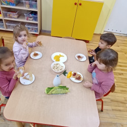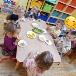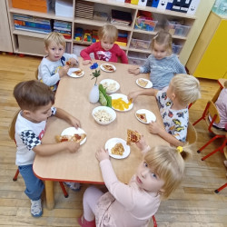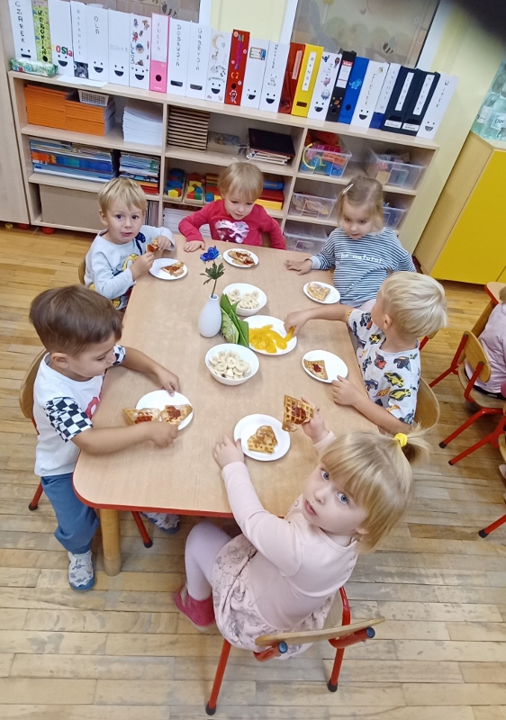 30 września w naszej grupie „Pszczółki" świętowaliśmy Dzień Chłopaka. Ten wyjątkowy dzień spędziliśmy na wspólnych zabawach i słodkim poczęstunku. Dzieci z radością przygotowały pyszne gofry z owocowymi dodatkami, które z apetytem schrupały. Było wesoło, smacznie i bardzo przyjemnie!