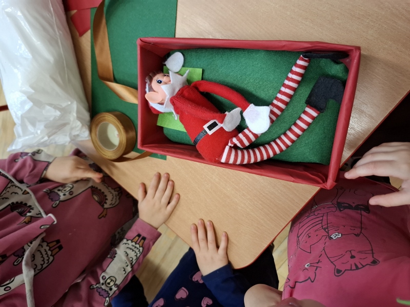 Dzieci przygotowały dla elfa specjalne miejsce, bawią się z nim, troszczą się o niego, a także dzielnie sprzątają wszystkie psoty, które Elf robi w nocy. Każdy dzień przynosi nowe, radosne niespodzianki i wiele uśmiechu.