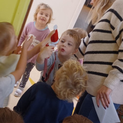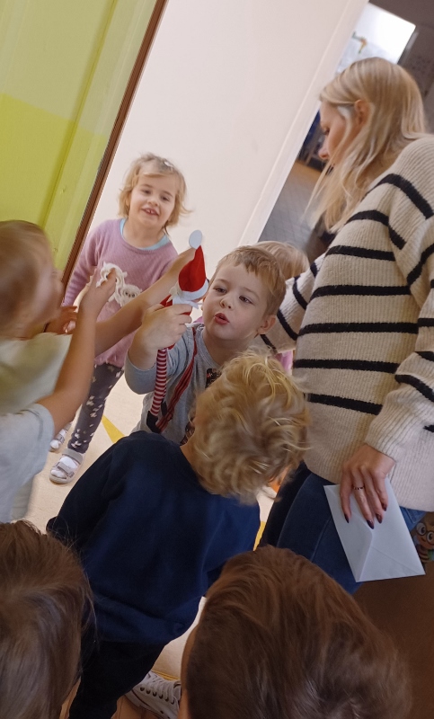 Do naszej przedszkolnej sali zawitał wyjątkowy gość — Elf Psotnik! Dzieci z grupy „Pszczółki" znalazły go tuż pod drzwiami, wraz z listem od Świętego Mikołaja. W liście Mikołaj poprosił przedszkolaków, aby zaopiekowały się elfem podczas jego pobytu w naszym przedszkolu.