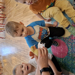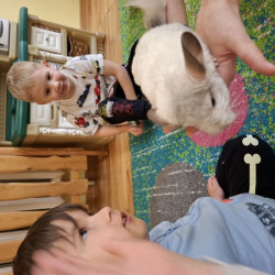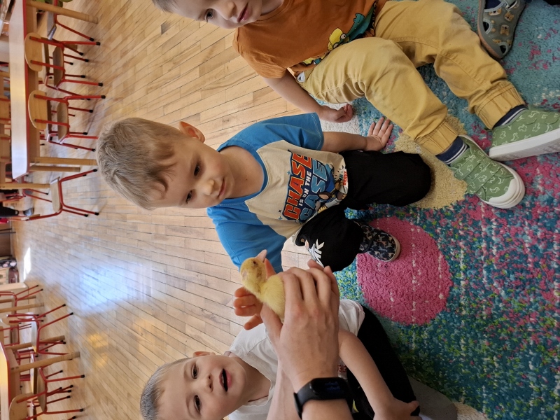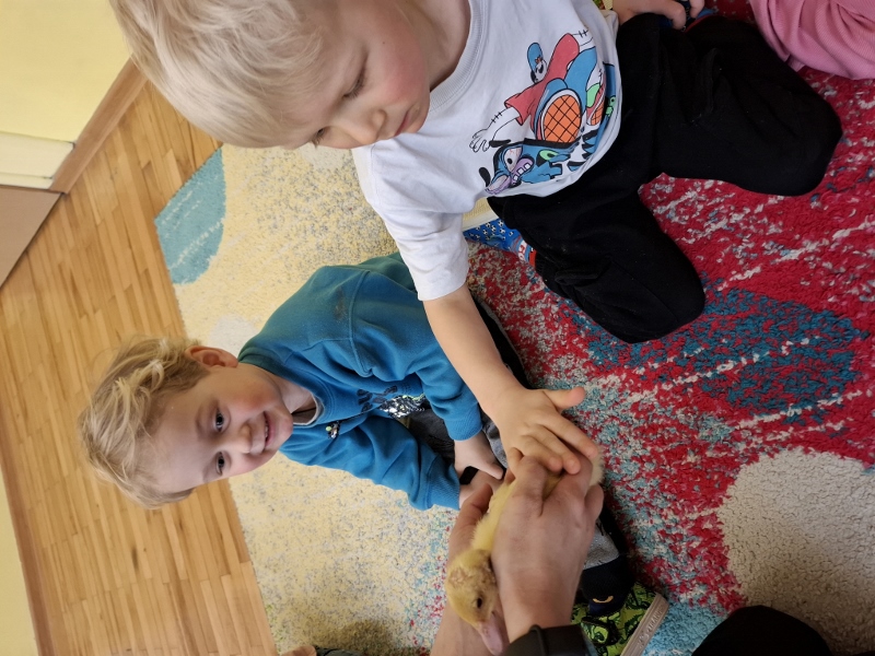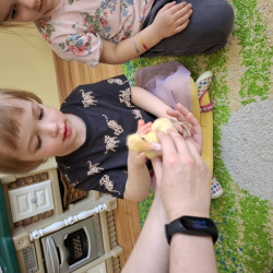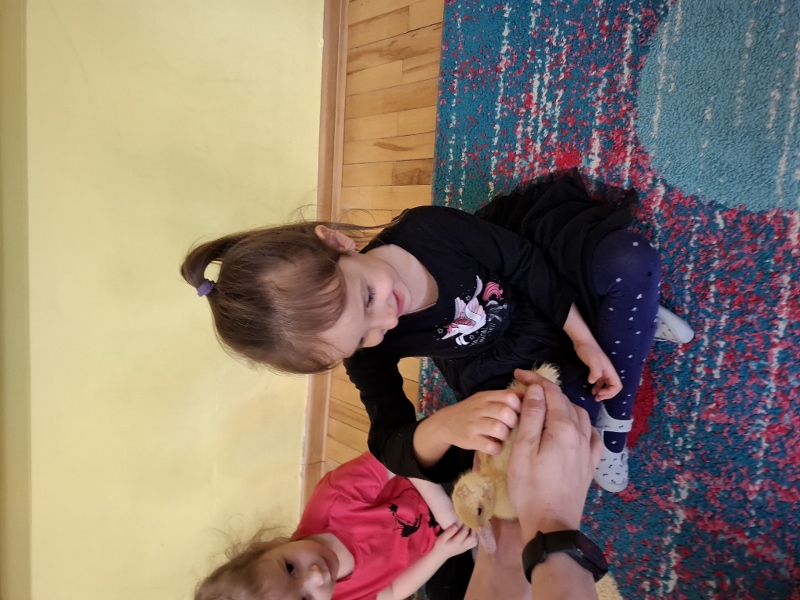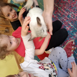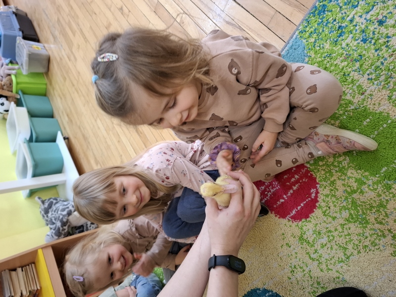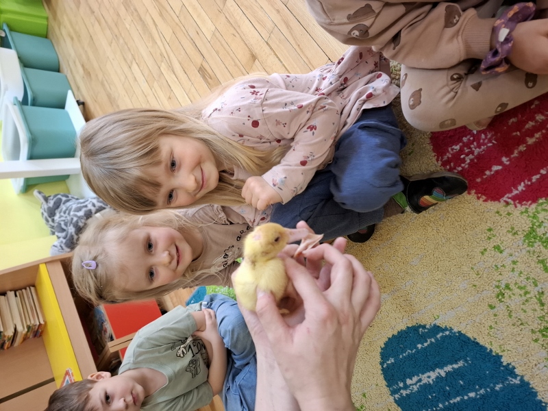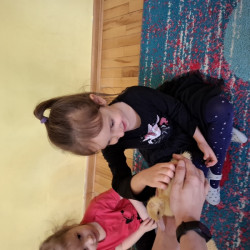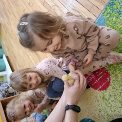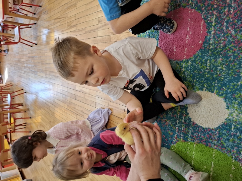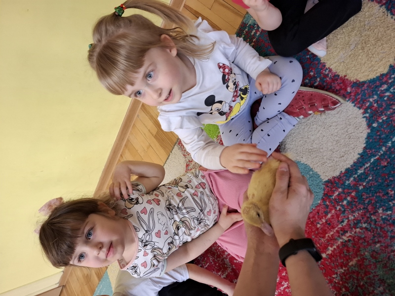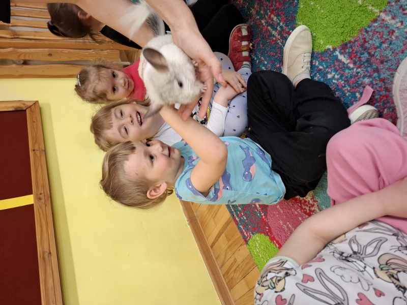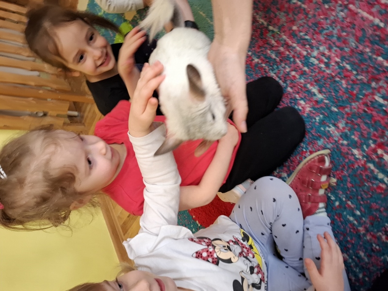 W naszej najmłodszej grupie „Pszczółki" odbyły się wyjątkowe warsztaty wielkanocne z udziałem zwierząt. Dzieci miały okazję poznać bliżej kaczuszki, królika oraz szynszyla.