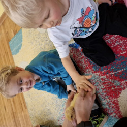 Podczas spotkania dzieci dowiedziały się wielu ciekawostek o zwierzętach – poznały ich zwyczaje, sposób odżywiania oraz charakterystyczne cechy. Największą radość sprawiła jednak możliwość bezpośredniego kontaktu – dzieci mogły pogłaskać zwierzątka, obserwować je z bliska i zobaczyć, jak się zachowują.