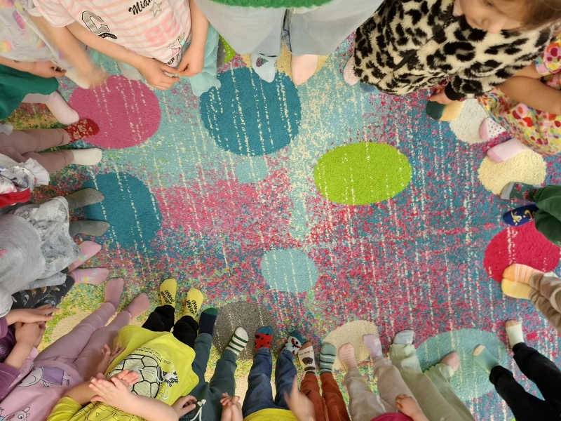 Dodatkowo, tego samego dnia dzieci przyszły do przedszkola w dwóch różnych skarpetkach. Ten wyjątkowy gest miał na celu okazanie solidarności z dziećmi z zespołem Downa oraz podkreślenie, jak ważna jest akceptacja, różnorodność i wzajemny szacunek. Dzięki temu wydarzeniu dzieci nie tylko świetnie się bawiły, ale również uczyły się empatii i otwartości na innych.