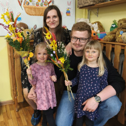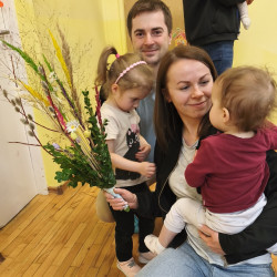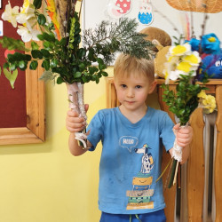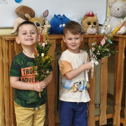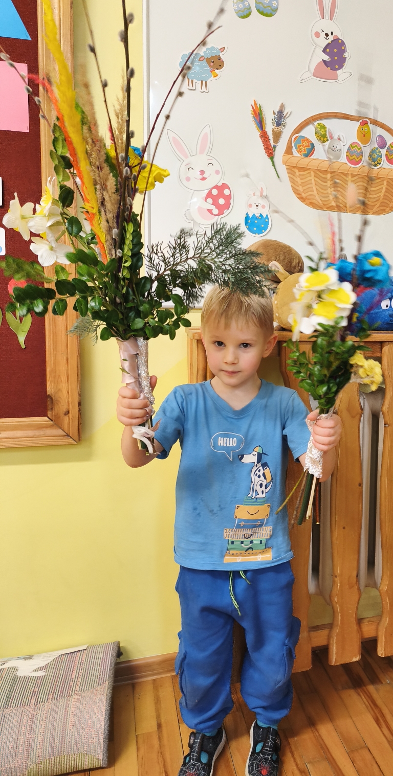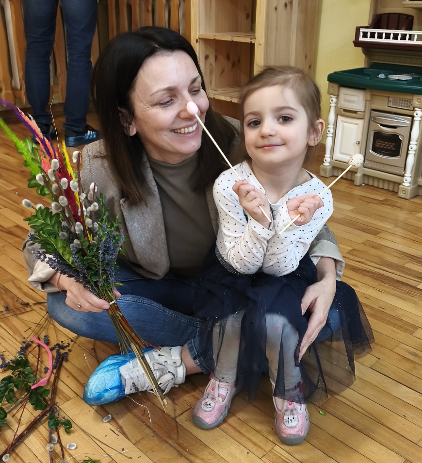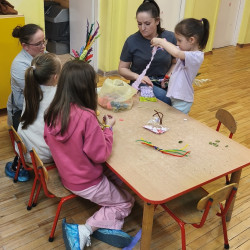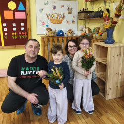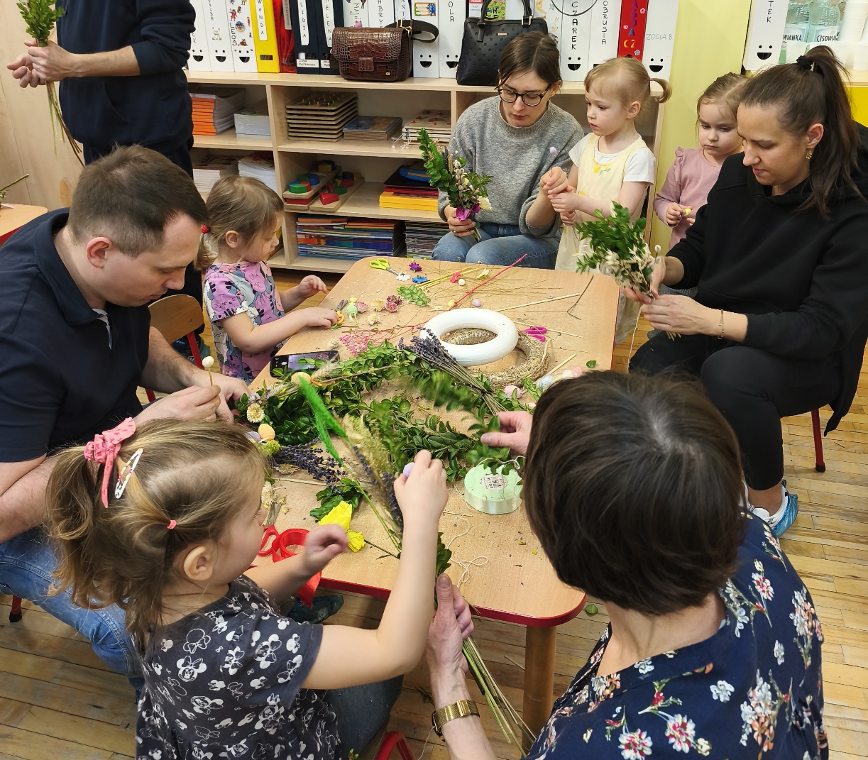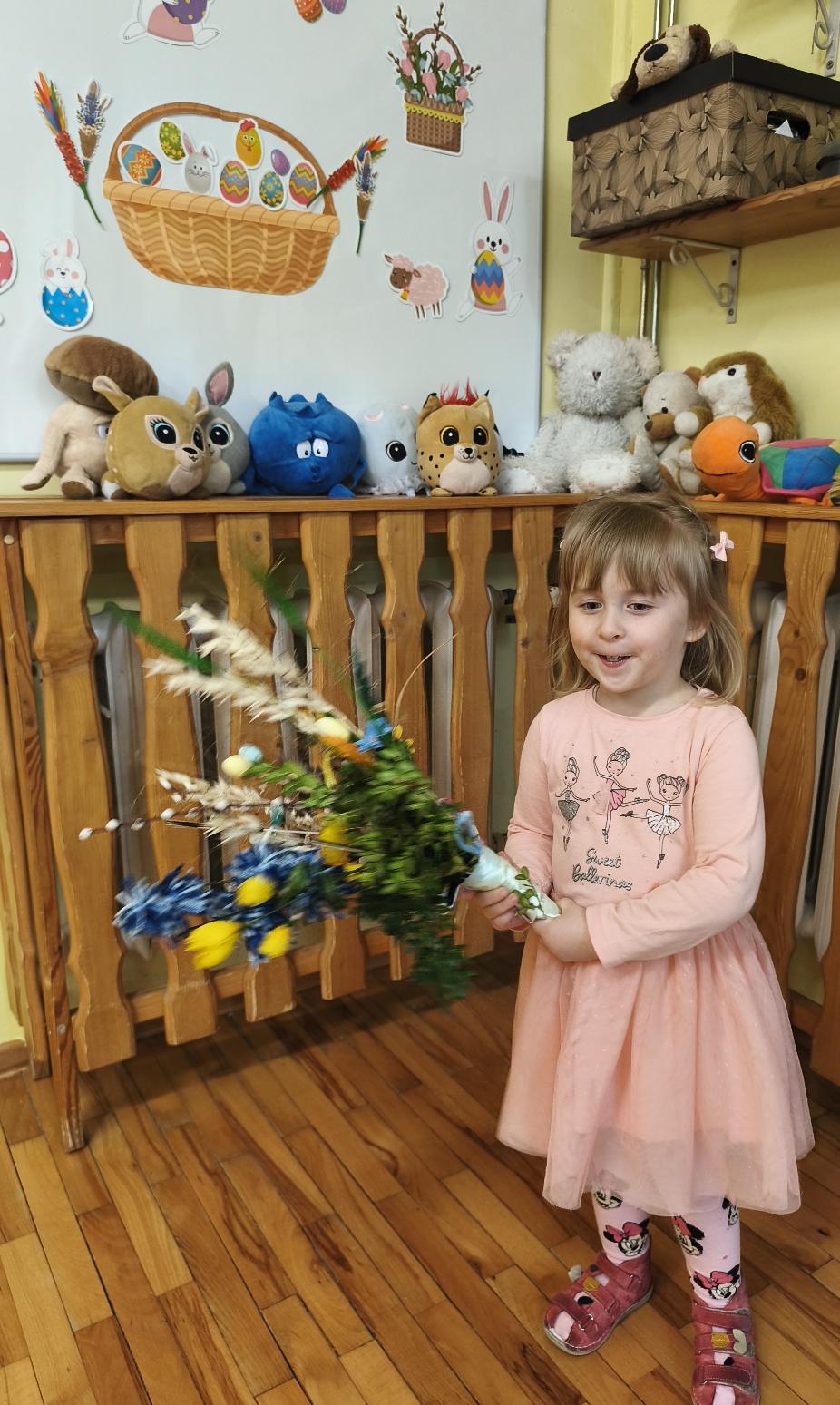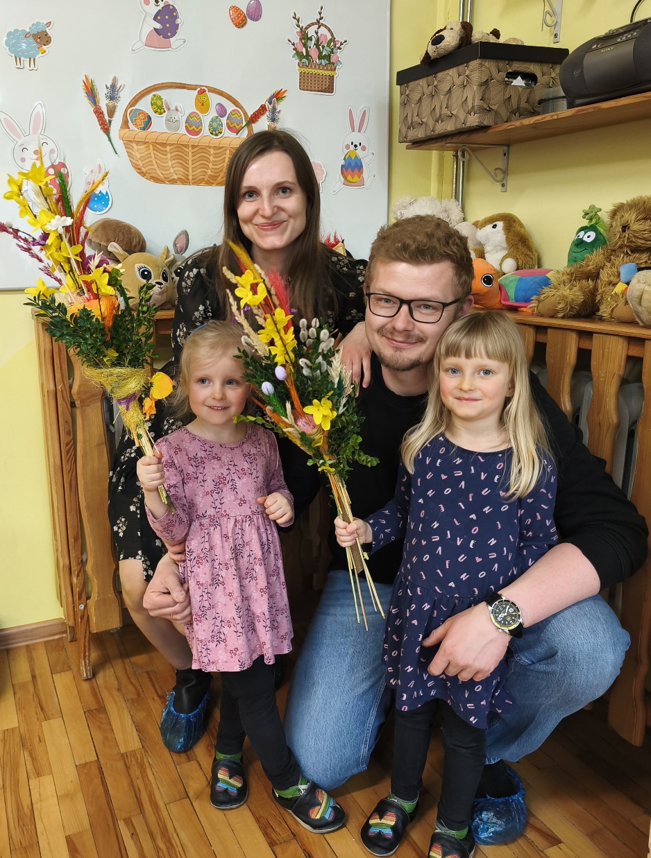 Tego dnia grupa „Pszczółki” miała przyjemność gościć swoich najbliższych – Rodziców oraz Rodzeństwo. Wspólna praca nad palmami wielkanocnymi stała się doskonałą okazją do integracji, budowania relacji oraz dzielenia się pomysłami i umiejętnościami. Dzieci z ogromnym zaangażowaniem tworzyły kolorowe kompozycje, wykorzystując różnorodne materiały i ozdoby, a wsparcie bliskich dodawało im jeszcze więcej radości i motywacji.