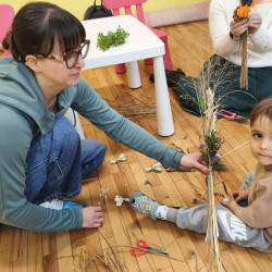 W naszej sali panowała serdeczna, przedświąteczna atmosfera, pełna uśmiechów, rozmów i twórczej energii. Efektem wspólnej pracy były przepiękne, unikalne palmy, które z pewnością staną się wyjątkową ozdobą wielkanocnych stołów.