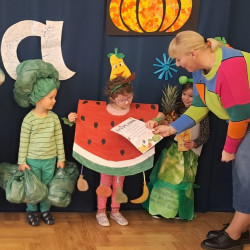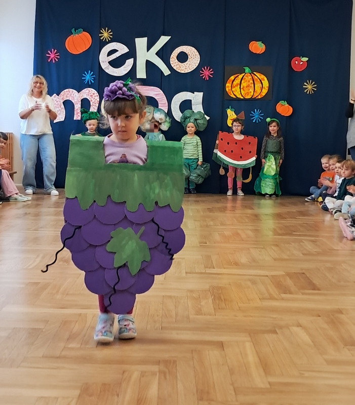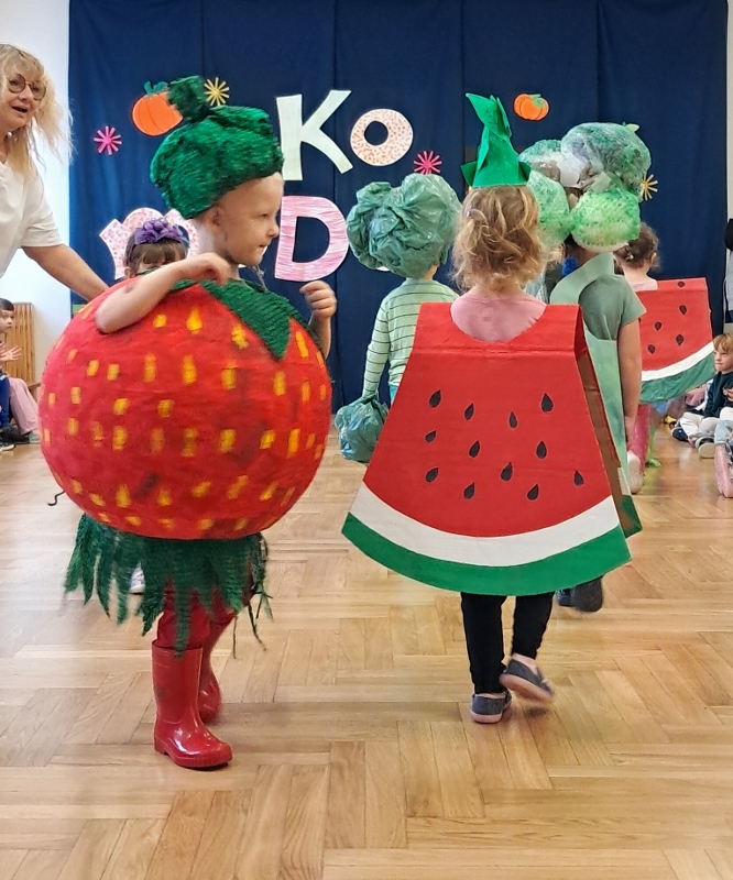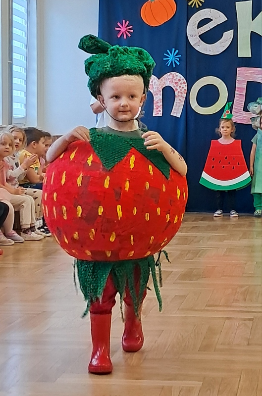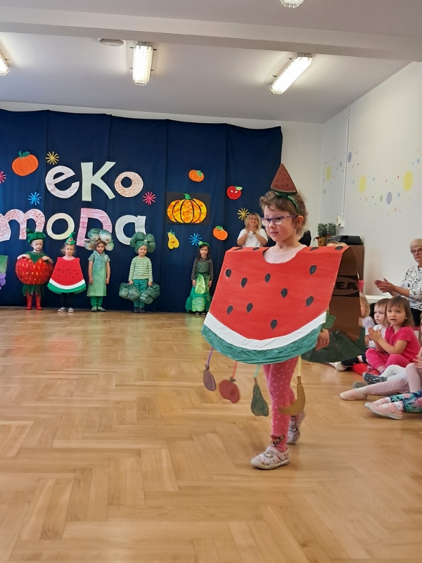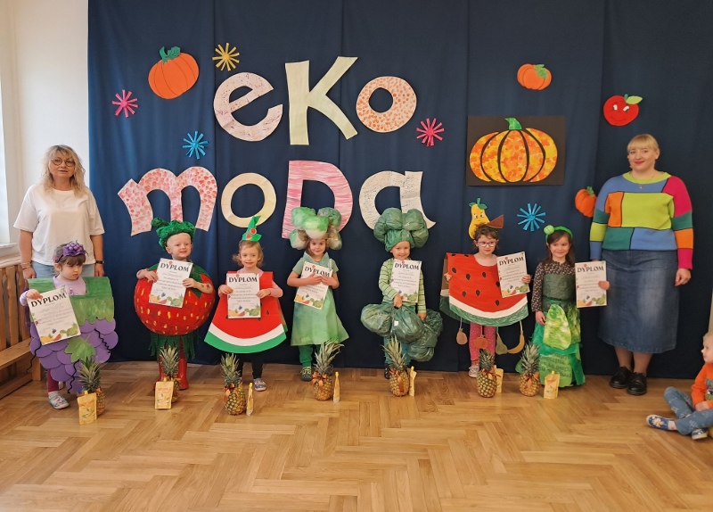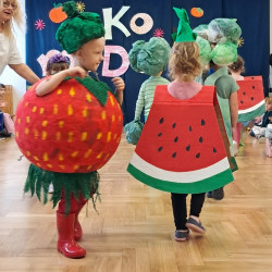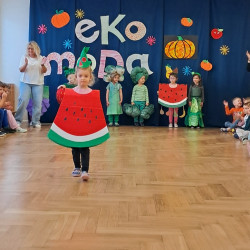 14 listopada w naszym przedszkolu odbyła się IX wewnątrzprzedszkolna edycja konkursu „Eko-Moda". Tegorocznym motywem przewodnim były „Warzywa i owoce – to witaminowe moce", co stało się inspiracją do stworzenia niezwykle kolorowych, pomysłowych i pełnych fantazji strojów.