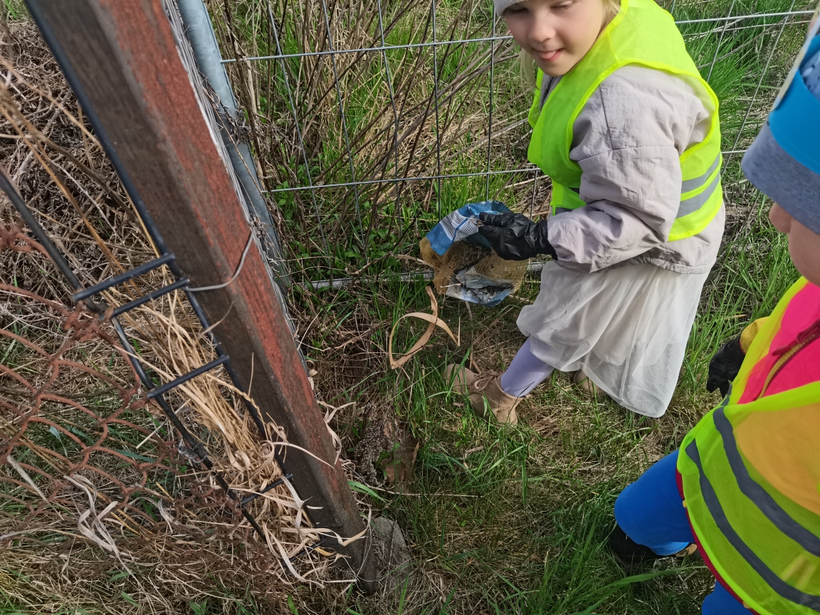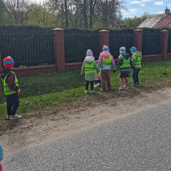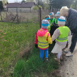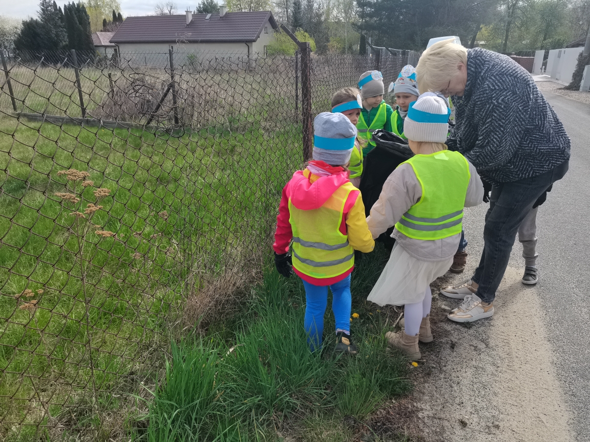 Dnia 24.04.2026r ( piątek) dzieci z grupy „Biedronki” włączyły się do akcji sprzątania swojej miejscowości. Wyposażone w rękawiczki, worki na śmieci, kamizelki odblaskowe, pełne zaangażowania wyruszyły w okolicę przedszkola, by zadbać o jej czystość i pozbierać wszystkie śmieci. Poprzez taką postawę pokazały, że od najmłodszych lat można kształtować postawę proekologiczną i być odpowiedzialnym za najbliższe środowisko.
