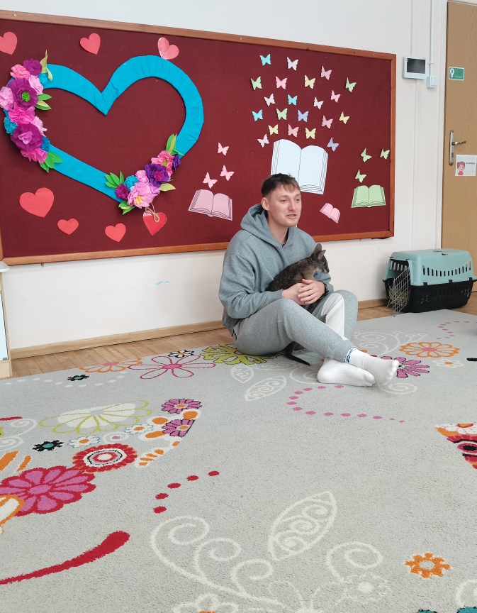 Dzieci odwiedził niecodzienny gość – kangur Sebastian ze swoim opiekunem.