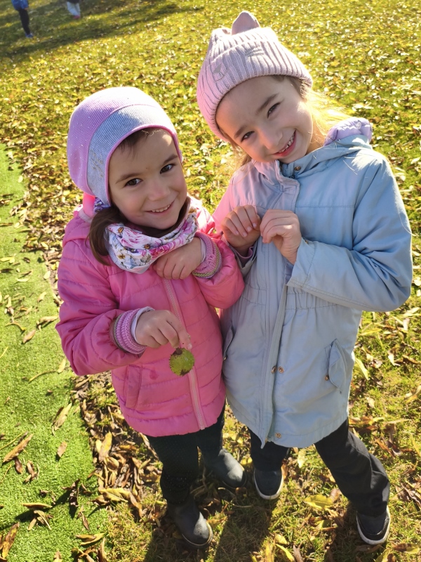 Praca, pracą, ale grupa Mądrych Sówek z przyjemnością korzysta z naszego urokliwego placu zabaw, tym bardziej, że pogoda dopisuje! Była zabawa w kawiarnie, piratów i oczywiście zbieranie kasztanów ...oj uzbieraliśmy ich trochę! Będzie można zająć się ich przeliczaniem, układaniem i segregowaniem