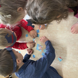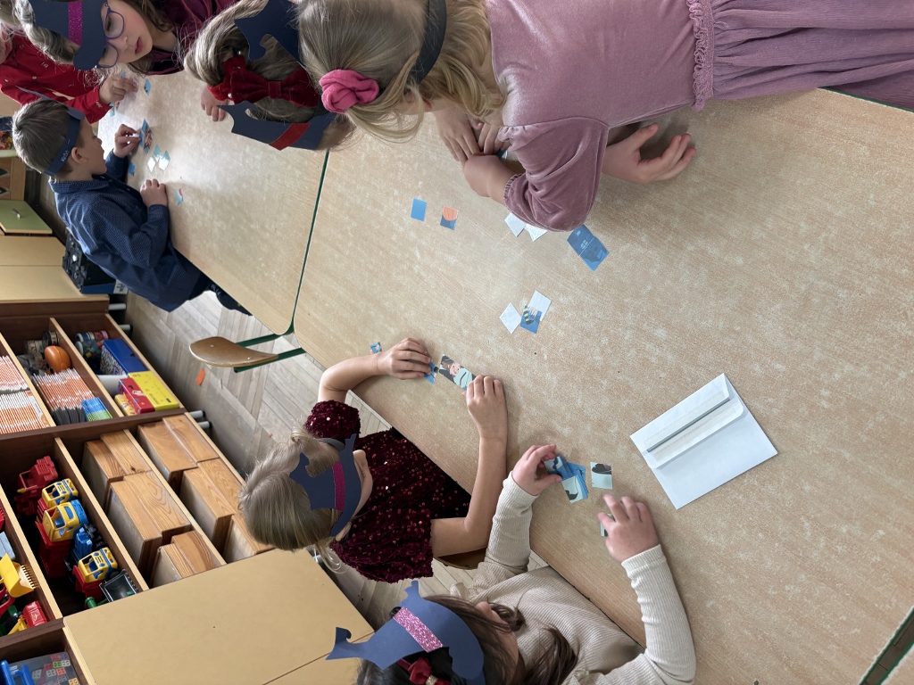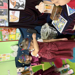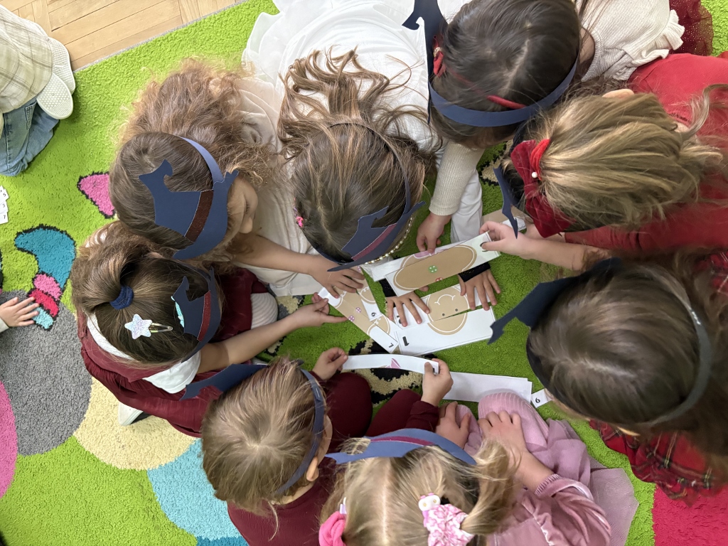 Andrzejkowe spotkanie w grupie Mądre Sowy rozpoczęło się od wysłuchania wiersza „Wieczór Andrzejkowy”. Następnie, żeby wróżby się spełniły każde dziecko wrzuciło przez lewe ramię monetę do zaczarowanej studni. Spotkaniu Andrzejkowemu towarzyszyły konkursy, zabawy i wróżby. Wszystko to odbywało się w rytmie muzyki tanecznej. Nie zabrakło również tradycyjnego ustawiania „bucików”. Mądre Sowy chętnie brały udział w zabawach i wróżbach. Wcześniej oczywiście rozmawialiśmy o tradycjach związanych z Andrzejkami oraz o tym, że naszych wróżb nie traktujemy poważnie – są to tylko zabawy. Dzień ten dostarczył przedszkolakom wielu przeżyć i pozytywnych emocji,a przede wszystkim stał się okazją do rozbudzania dziecięcej ciekawości oraz chęci poznawania tradycji ludowych.