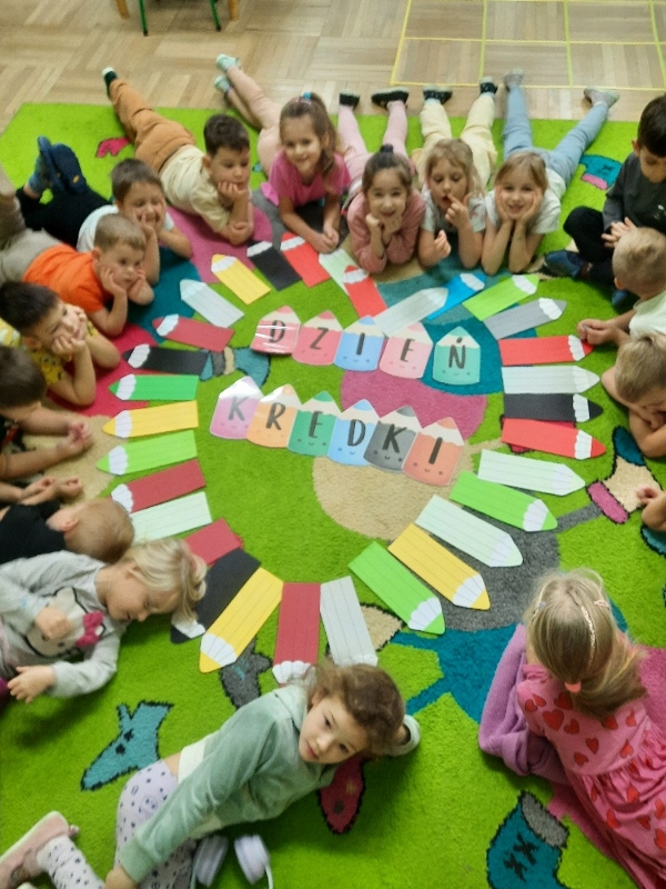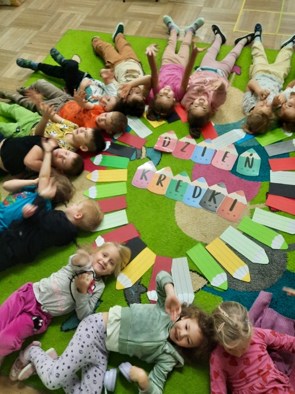 Dzień kredki to święto obchodzone22 listopada. Mądre Sowy obchodziły je 24 w poniedziałek. Kredki towarzyszą dzieciom od najmłodszych lat. To dzięki nim przedszkolaki mogą wyrazić to co myślą, czują lub to o czym marzą. Celem obchodów Dnia Kredki w naszej grupie była przede wszystkim integracja grupy podczas wspólnie wykonywanych zadań. Dzieci wysłuchały piosenki „Kolorowe kredki”. Podczas aktywności dopasowywały kolory kredek do odpowiednich obrazków, określały kolory, przeliczały kredki, układały sudoku, sprawdzały po wielkości które kolory kredek są najczęściej używane, a które najmniej. To zadanie stało się przyczynkiem do wysłuchania opowiadania „ Szara kredka”. Wiedzą, że wszystkie kolory kredek są tak samo ważne, nawet jeśli używamy je rzadziej. Poza tym wspólnie w grupach malowały duże sylwety kredek farbami. Układały z kredek figury geometryczne, a po południu malowały, kolorowały i dbały o to, aby wszystkie kredki po skończonej pracy twórczej znalazły się w pojemnikach.