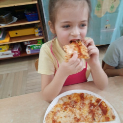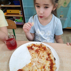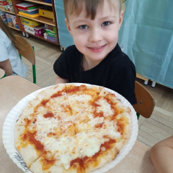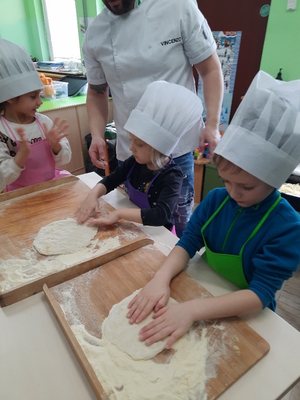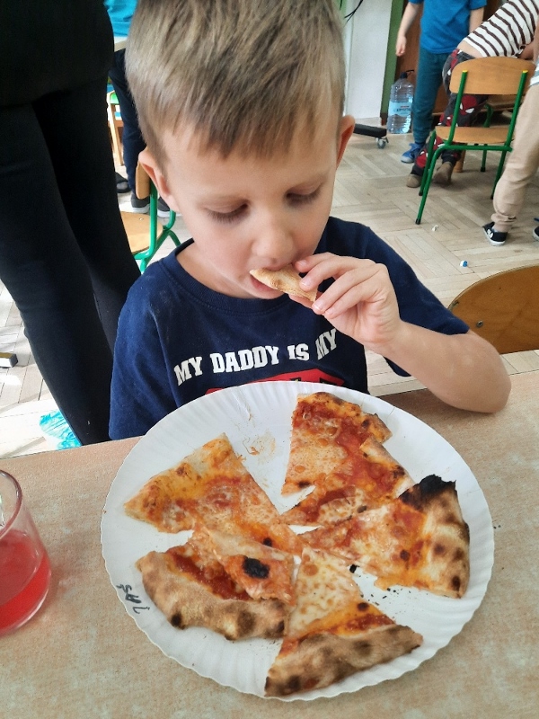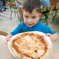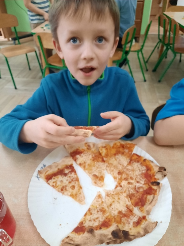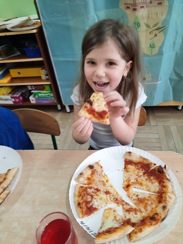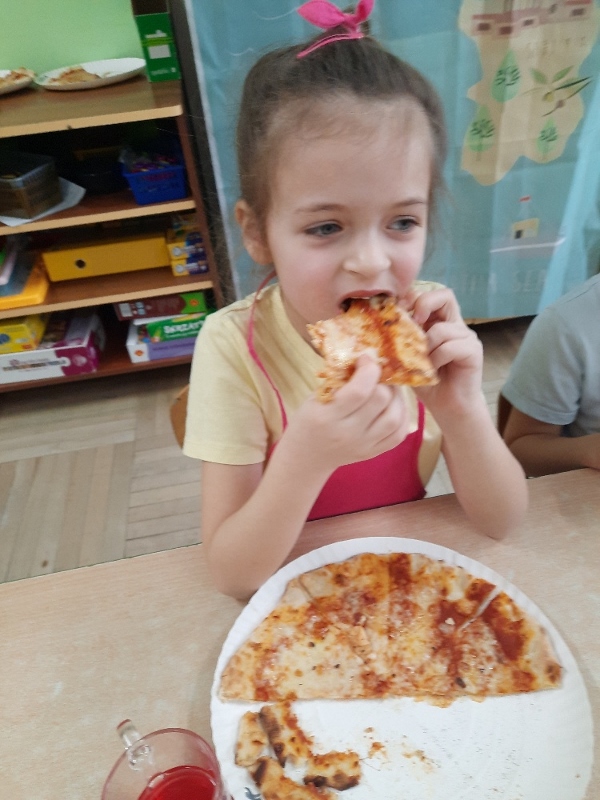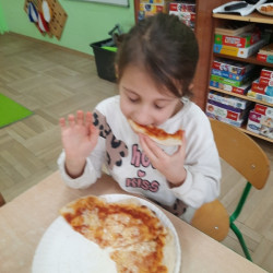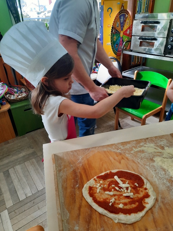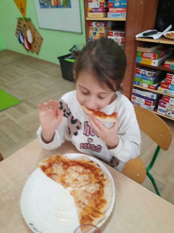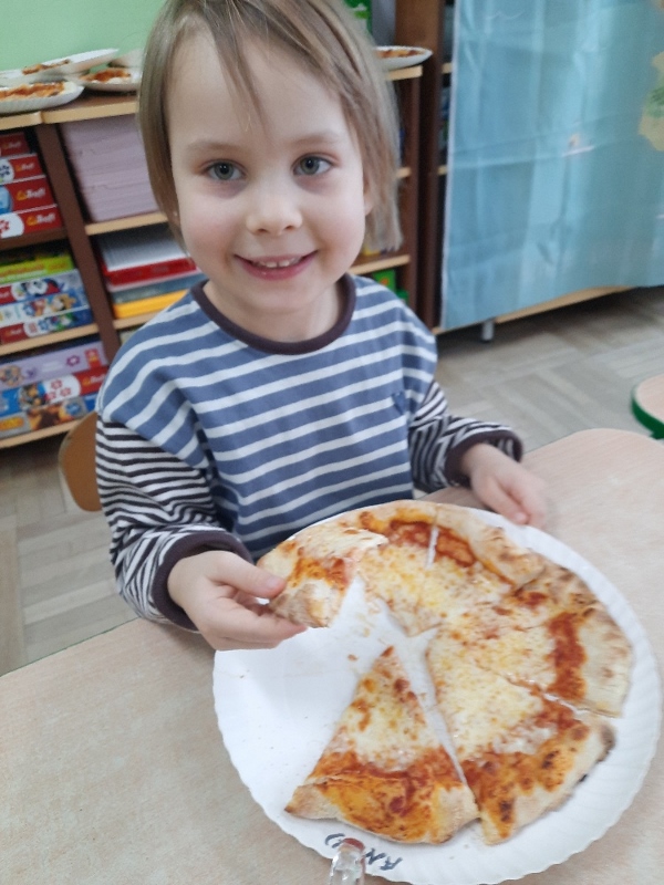 9 lutego na całym świecie obchodzony jest Dzień Pizzy. Tego dnia w naszej grupie odbyły się warsztaty wytwarzania pizzy. W roli pizzaiolo wystąpił tata Ani, który jest Włochem. Podczas zajęć dowiedziały się, z jakiego kraju pochodzi pizza, oraz jakich składników potrzebujemy do jej przygotowania. Przedszkolaki miały okazję zobaczyć jak powstaje prawdziwa włoska pizza, a następnie same zamieniły się w małych pizzaolo i samodzielnie przygotowały swoje pizze. Warsztaty zakończyły się konsumpcją własnego wypieku. Każdy uczestnik warsztatów otrzymał dyplom oraz naklejkę. Dzień ten upłynął w bardzo miłej i radosnej atmosferze.
