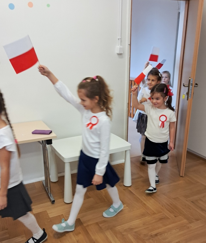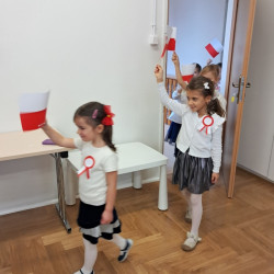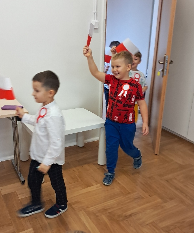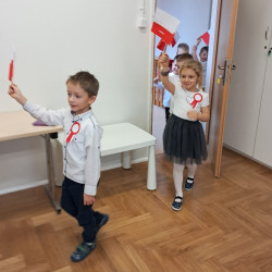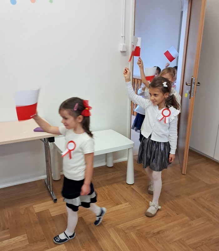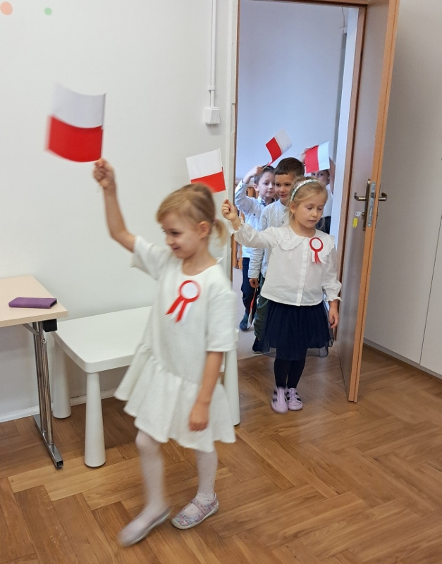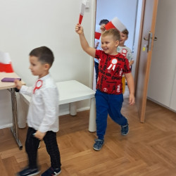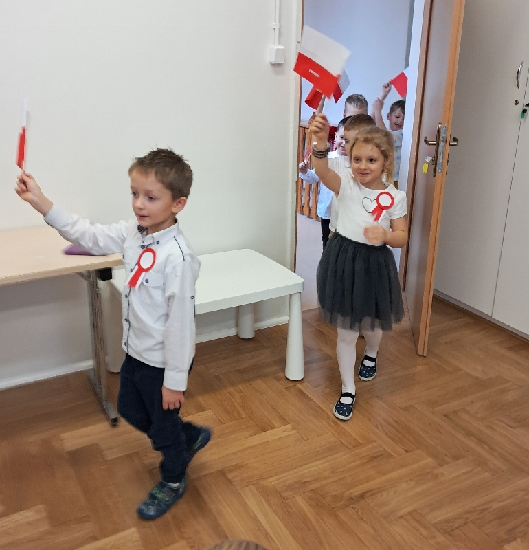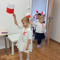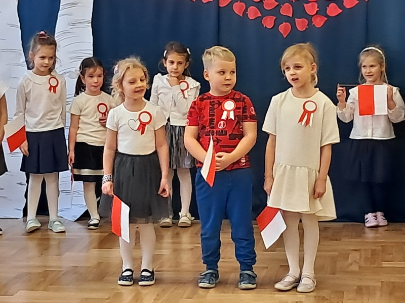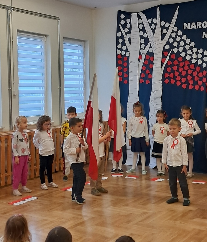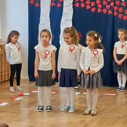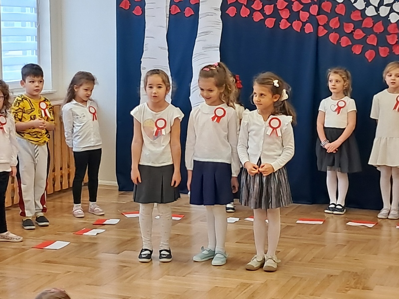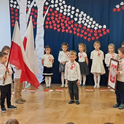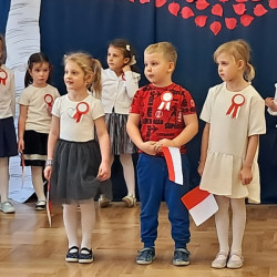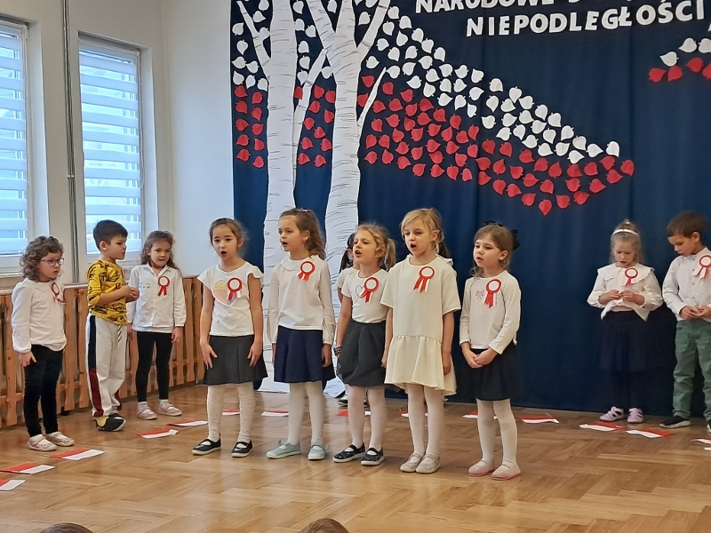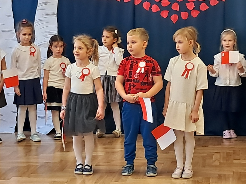 Przedszkolaki z grupy Mądre Sowy przygotowały i zaprosiły 12 listopada młodszych kolegów z grupy Pszczółki i Biedronki na uroczystą akademię z okazji 107 rocznicy odzyskania przez Polskę niepodległości. W odświętnych, galowych strojach mali patrioci z wielką dumą i powagą odśpiewali „Mazurek Dąbrowskiego" ( wszystkie cztery zwrotki). Następnie na scenie pojawiali się kolejno mali aktorzy prezentując wiersze opowiadające o symbolach narodowych. Z radością i wielkim zaangażowaniem śpiewały patriotyczne pieśni. Dzień ten na pewno przyczyni się do kształtowania patriotycznych postaw naszych przedszkolaków.