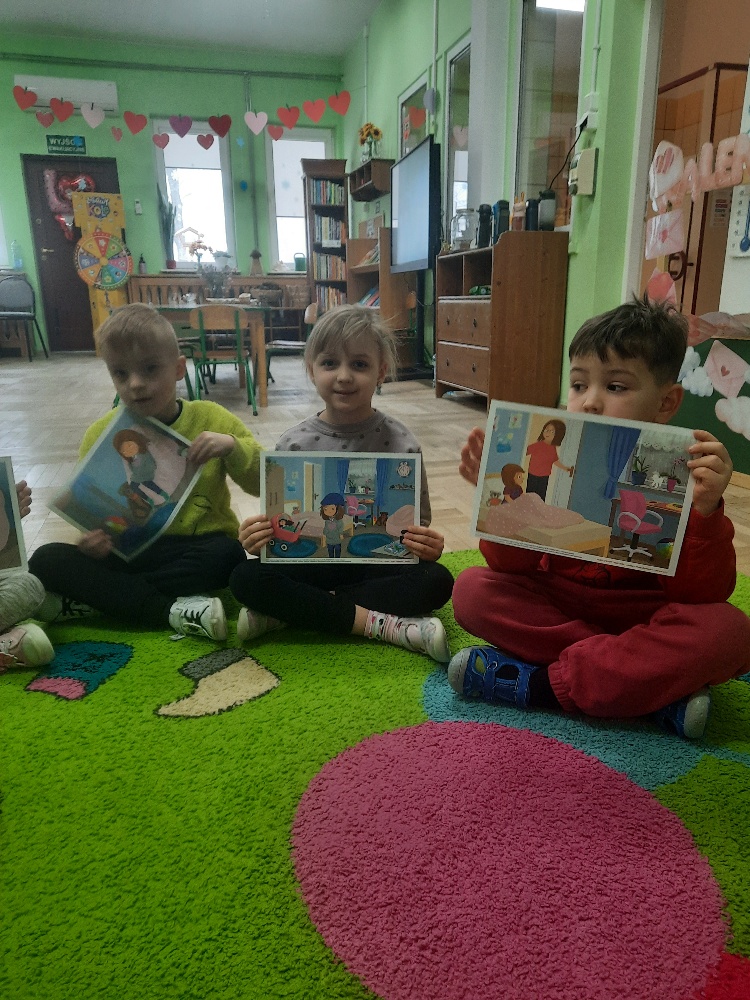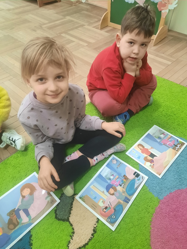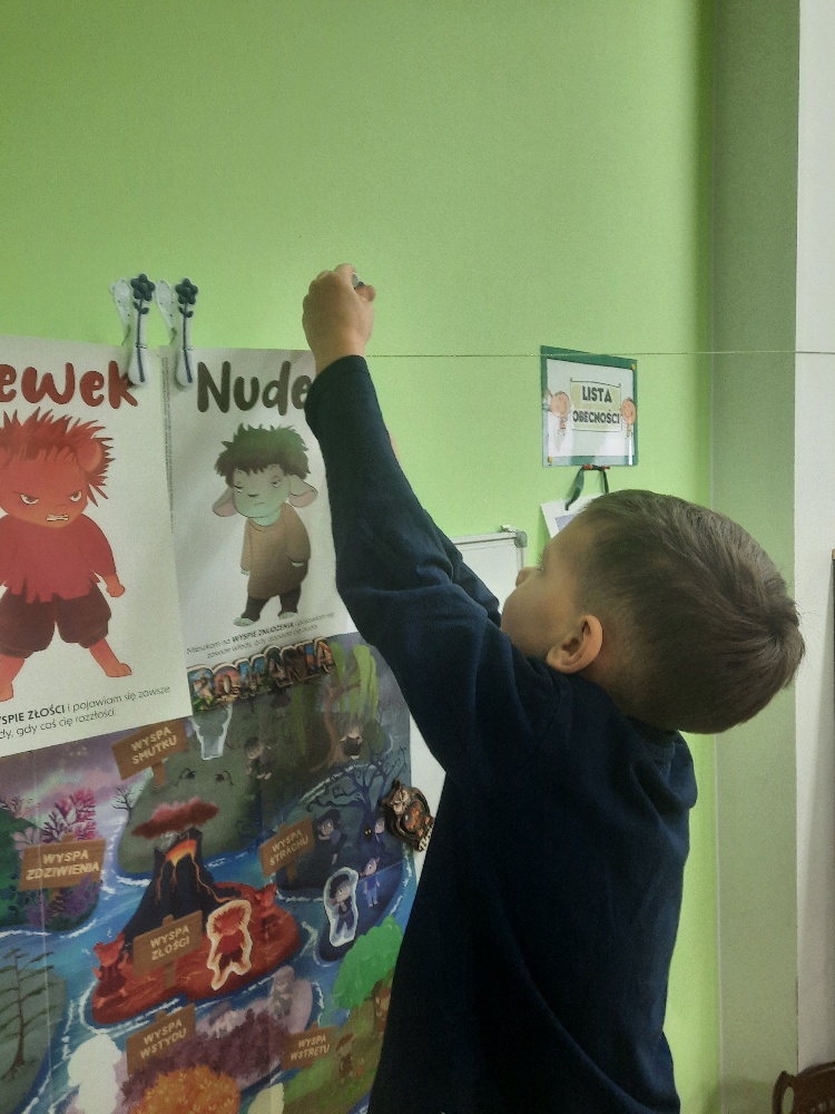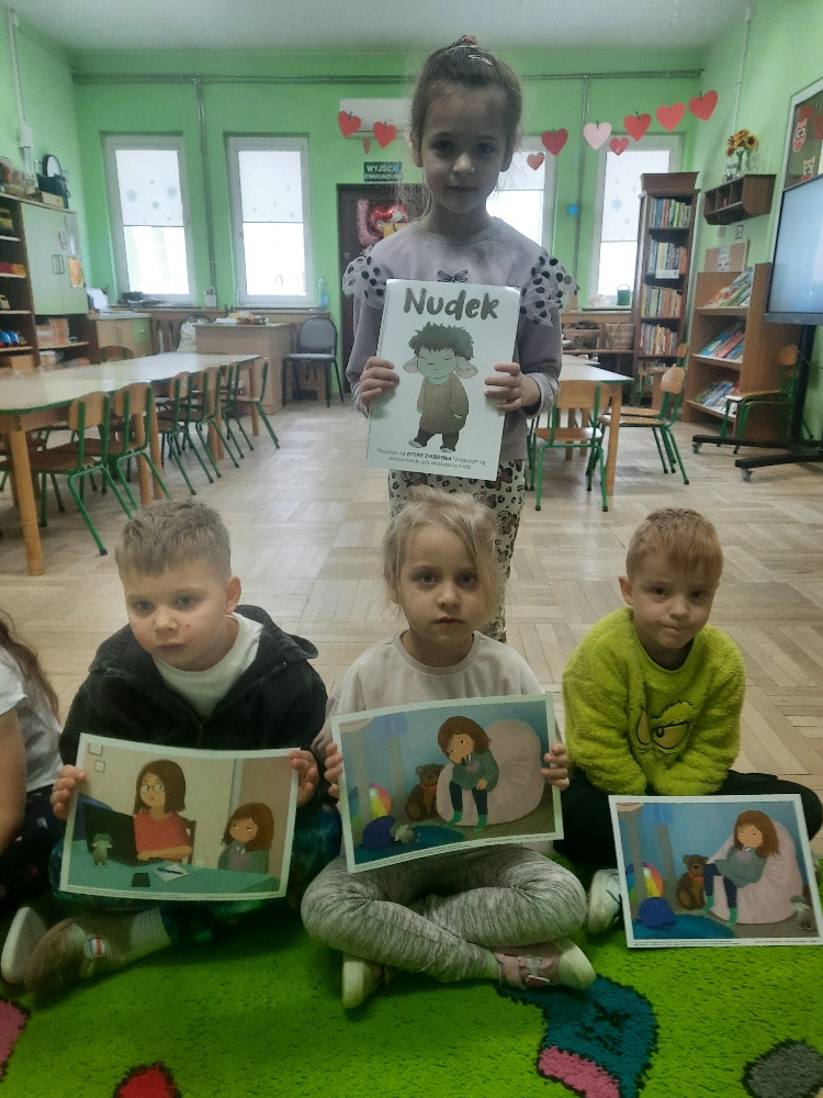 18 lutego dzieci z grupy Mądre Sowy w ramach projektu „Czuciaki z Krainy Emocji” po raz szósty przeniosły się do Krainy Emocji. Tym razem była to wyspa znudzenia. Podczas zajęć poznały historię Anielki, którą podczas deszczowej pogody odwiedził Nudek. Dzięki opowiadaniu dzieci dowiedziały się czym jest nuda. Opowiadanie było punktem wyjścia do rozmów na temat:kiedy dzieci się nudzą? Co wtedy czują? I w jaki sposób można sobie z nudą poradzić? Wiedzą, że nuda to uczucie, które objawia się zniecierpliwieniem, marudzeniem, a nawet zmęczeniem i rozkojarzeniem. Dzieci często reagują na nudę narzekaniem: nie mam co robić lub nie mam się w co pobawić, oczekując, że ktoś dorosły im ten czas zorganizuje. Ale nuda może pełnić bardzo ważną rolę w życiu dziecka -uczy kreatywności. Dziecko, które się nudzi może wymyślać nowe ciekawe zabawy, tworzyć zabawki i prace z „niczego” np. wykorzystując pudełka, włóczkę, kocyki. ….Mądre Sowy bardzo często wykorzystują pudełka po klockach i mięciutkie kocyki do zabaw na dywanie.