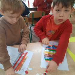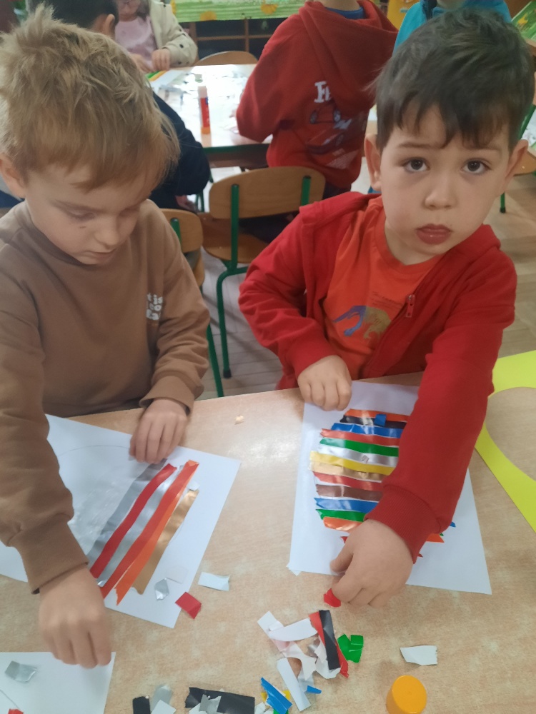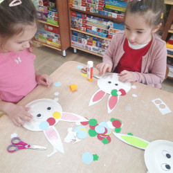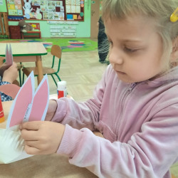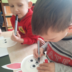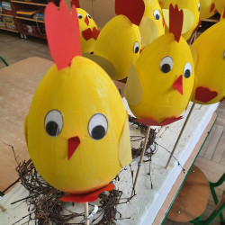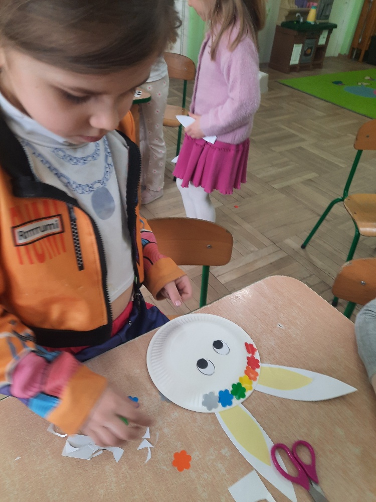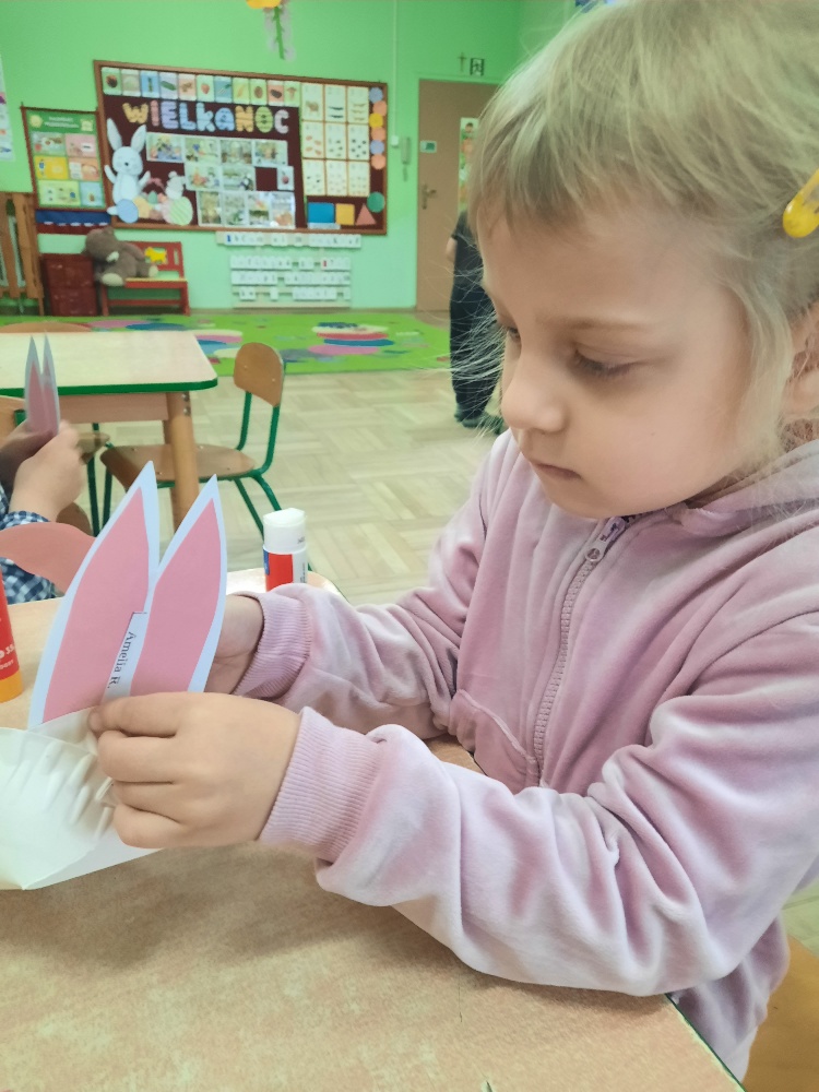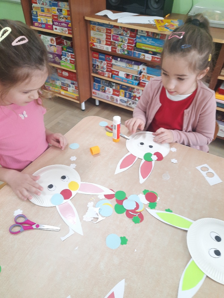 W tygodniu poprzedzającym Wielkanoc przedszkolaki z dużym zaangażowaniem przygotowywały się do Świąt. Poznały polskie zwyczaje i tradycje ludowe związane ze świętami. Przygotowały wiele dekoracji- wyklejały papierowe pisanki, robiły wielkanocne zajączki i kurczaczki, siały rzeżuchę. Składały papierowe koszyczki, piekły babeczki, a w piątek w ramach spaceru wyruszyły na poszukiwanie jajeczek schowanych przez zajączka.