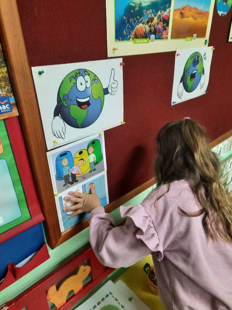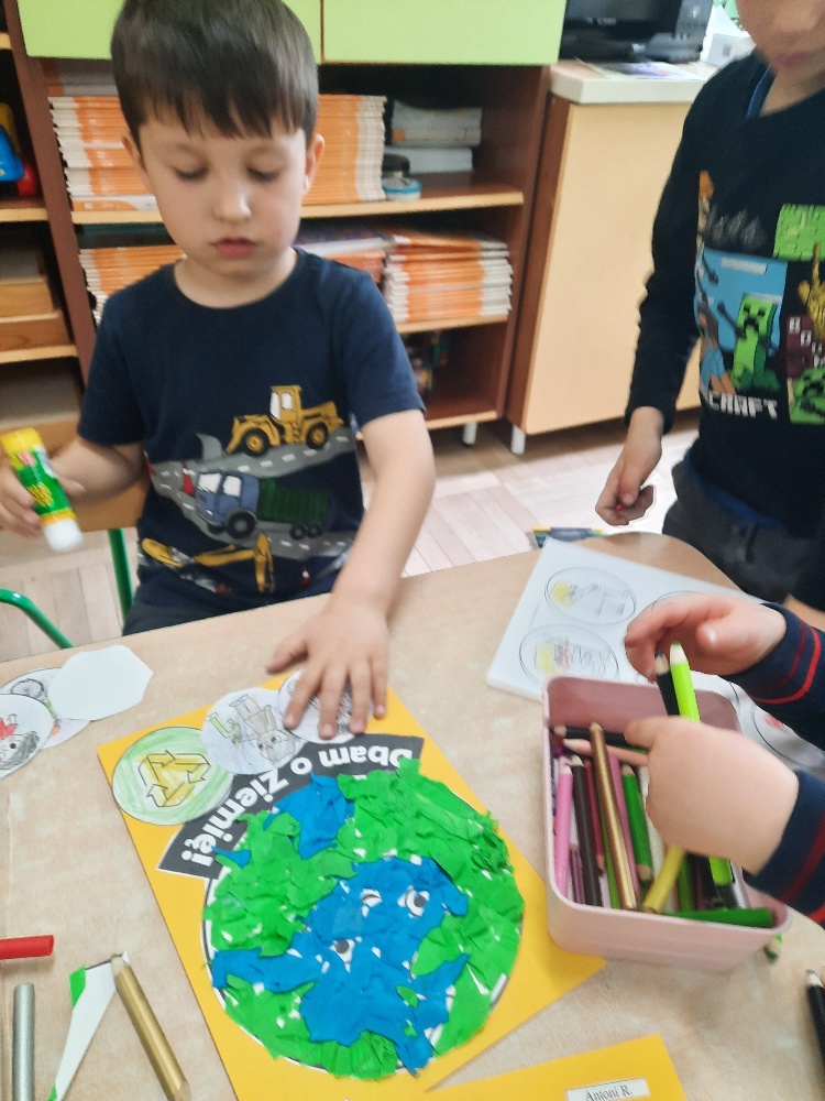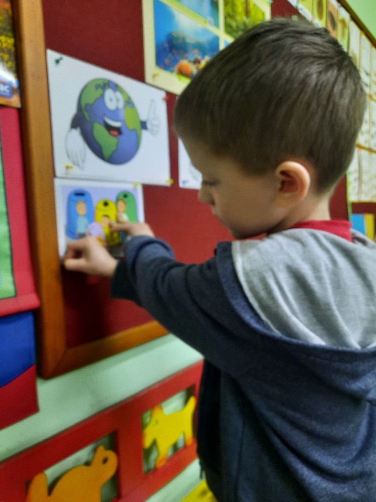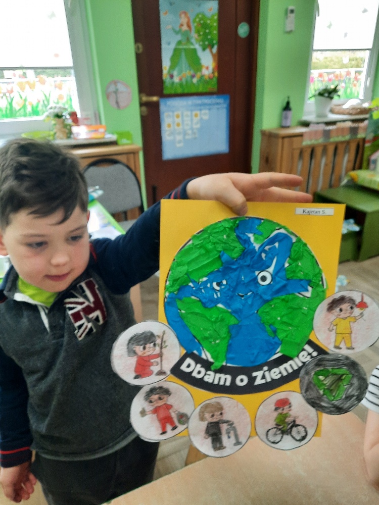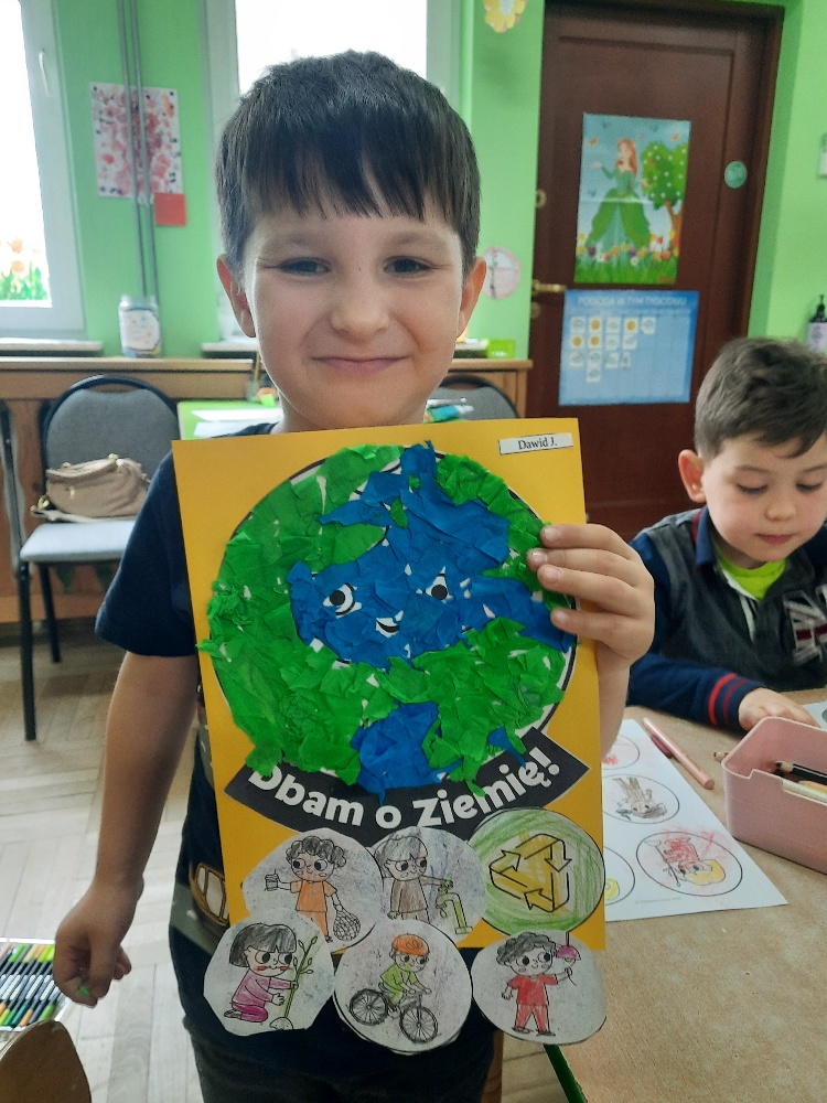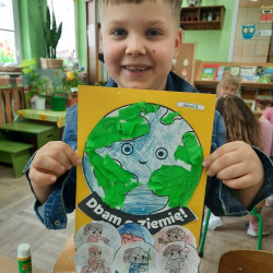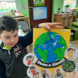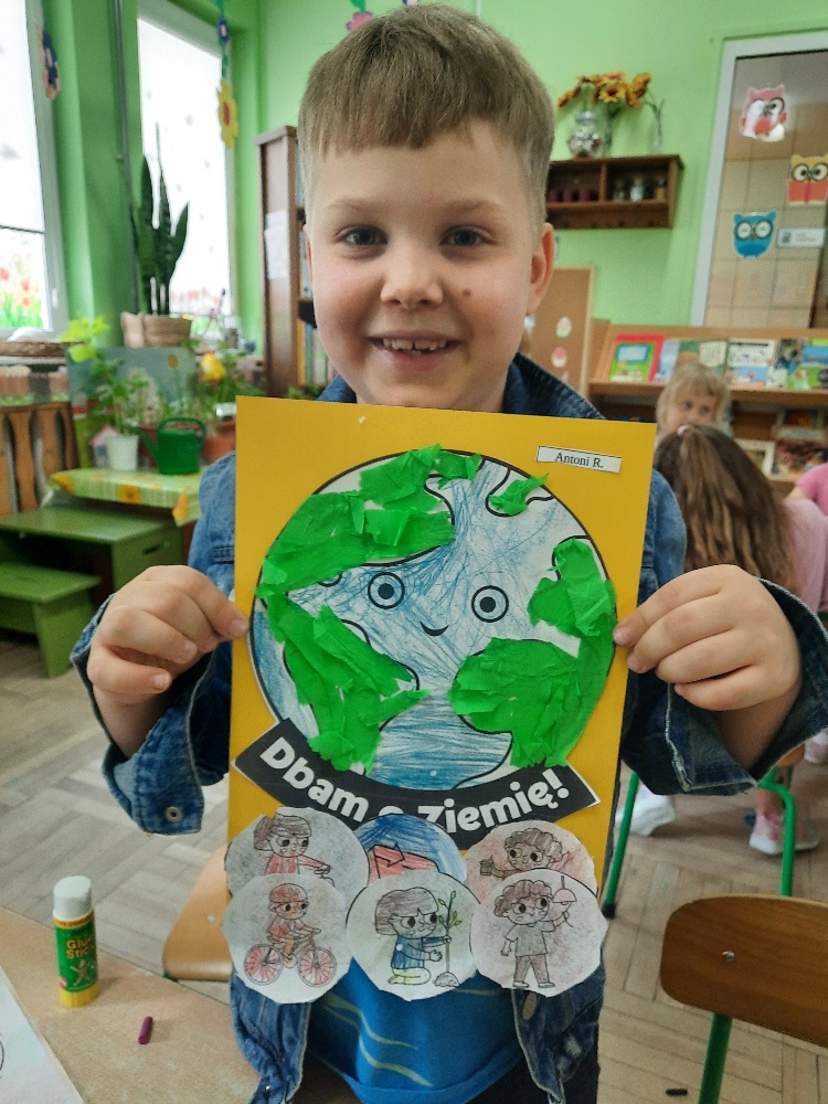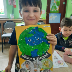 Tematem tygodnia było „Ziemia – moja planeta”. Podczas różnych aktywności dzieci dowiedziały się jak dbać o naszą planetę, aby była szczęśliwa. W piątek 24 kwietnia z okazji obchodów Światowego Dnia Ziemi wykonały Kodeks Małego Ekologa, który został umieszczony w widocznym miejscu w sali zabaw. Przed południem dzieci wyposażone w rękawice ochronne i worki wzięły udział w gminnej akcji sprzątania świata. Nasze działania obejmowały teren wokół przedszkola. Celem akcji było budowanie świadomości ekologicznej oraz inicjowanie działań na rzecz ochrony środowiska. Wspólne sprzątanie jest przykładem współpracy i zaangażowania najmłodszych w życie lokalnej społeczności. Dzieci z dumą prezentowały efekty swojej pracy, obiecując, że zawsze będą troszczyły się o naszą planetę.