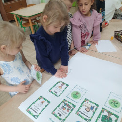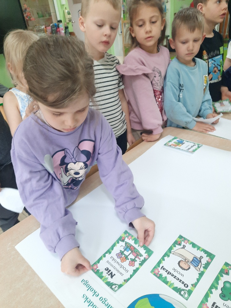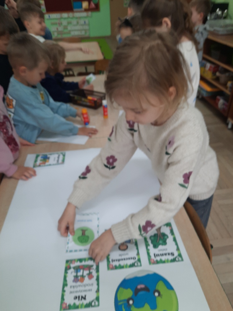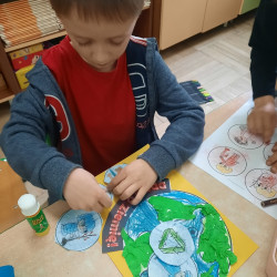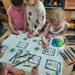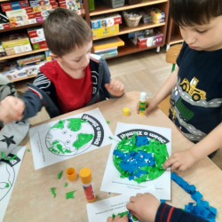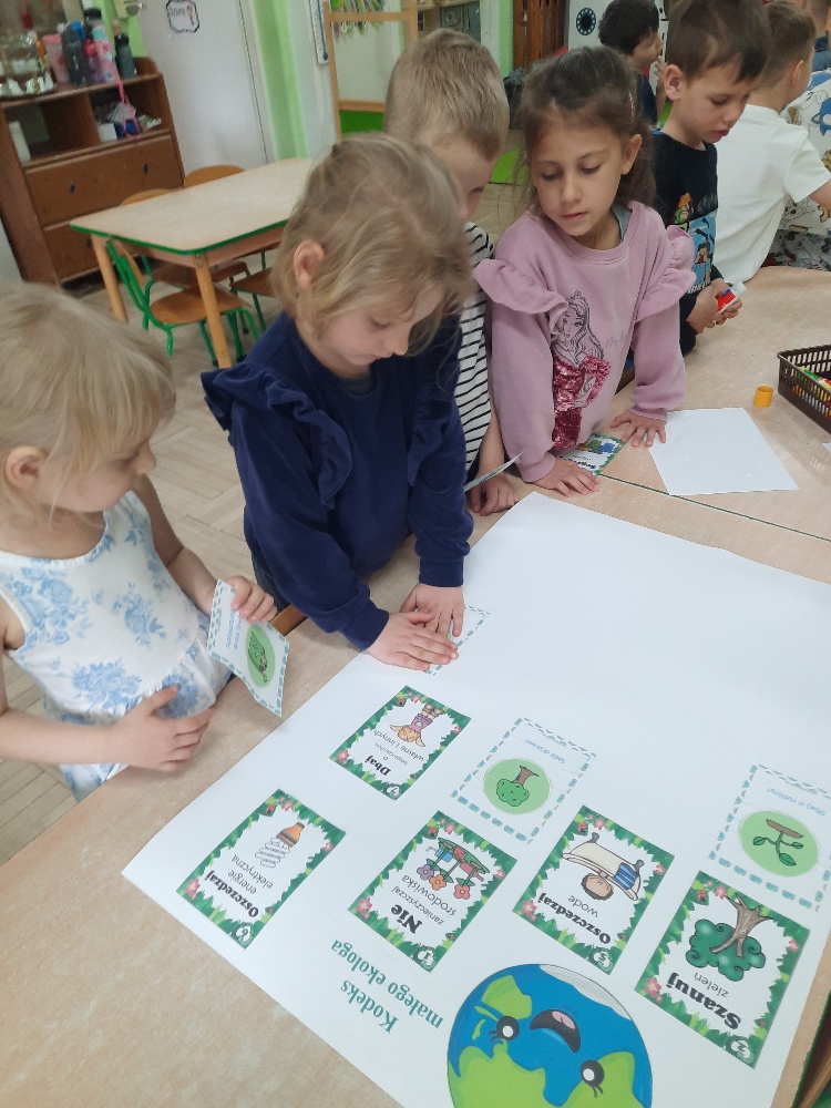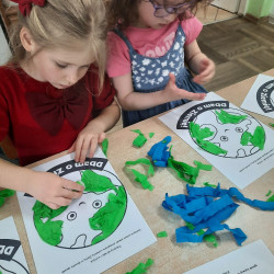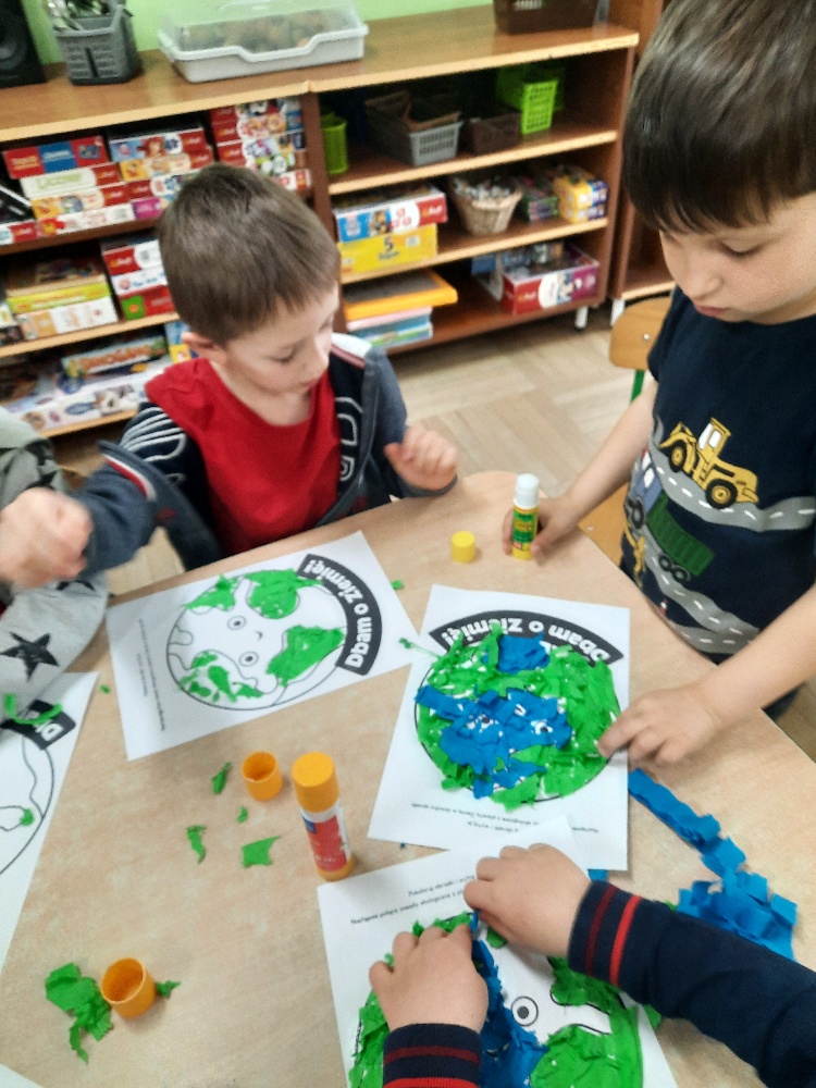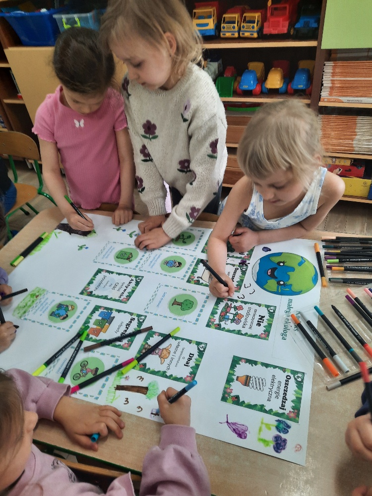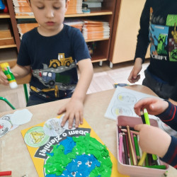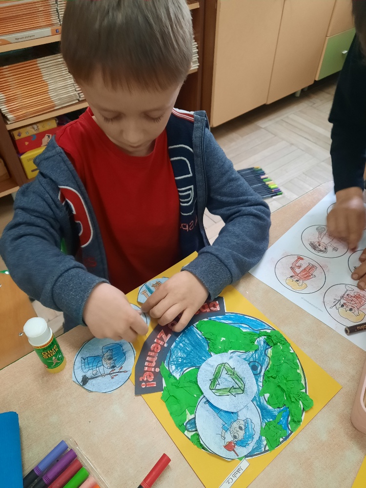Tematem tygodnia było „Ziemia – moja planeta”. Podczas różnych aktywności dzieci dowiedziały się jak dbać o naszą planetę, aby była szczęśliwa. W piątek 24 kwietnia z okazji obchodów Światowego Dnia Ziemi wykonały Kodeks Małego Ekologa, który został umieszczony w widocznym miejscu w sali zabaw. Przed południem dzieci wyposażone w rękawice ochronne i worki wzięły udział w gminnej akcji sprzątania świata. Nasze działania obejmowały teren wokół przedszkola. Celem akcji było budowanie świadomości ekologicznej oraz inicjowanie działań na rzecz ochrony środowiska. Wspólne sprzątanie jest przykładem współpracy i zaangażowania najmłodszych w życie lokalnej społeczności. Dzieci z dumą prezentowały efekty swojej pracy, obiecując, że zawsze będą troszczyły się o naszą planetę.