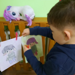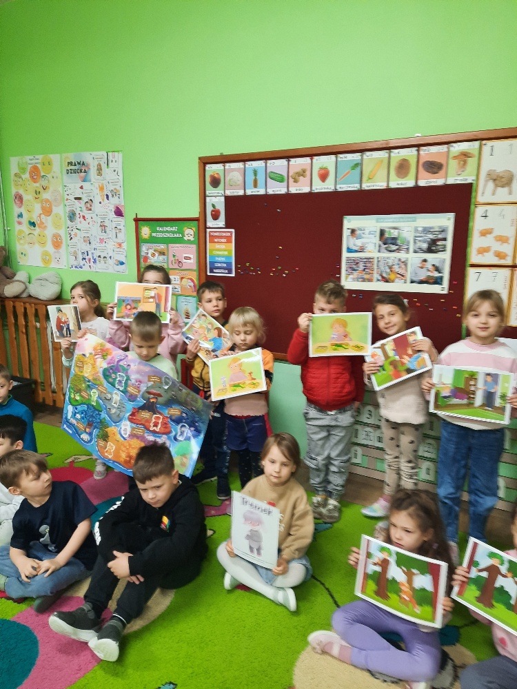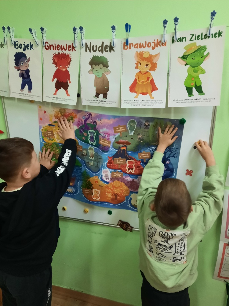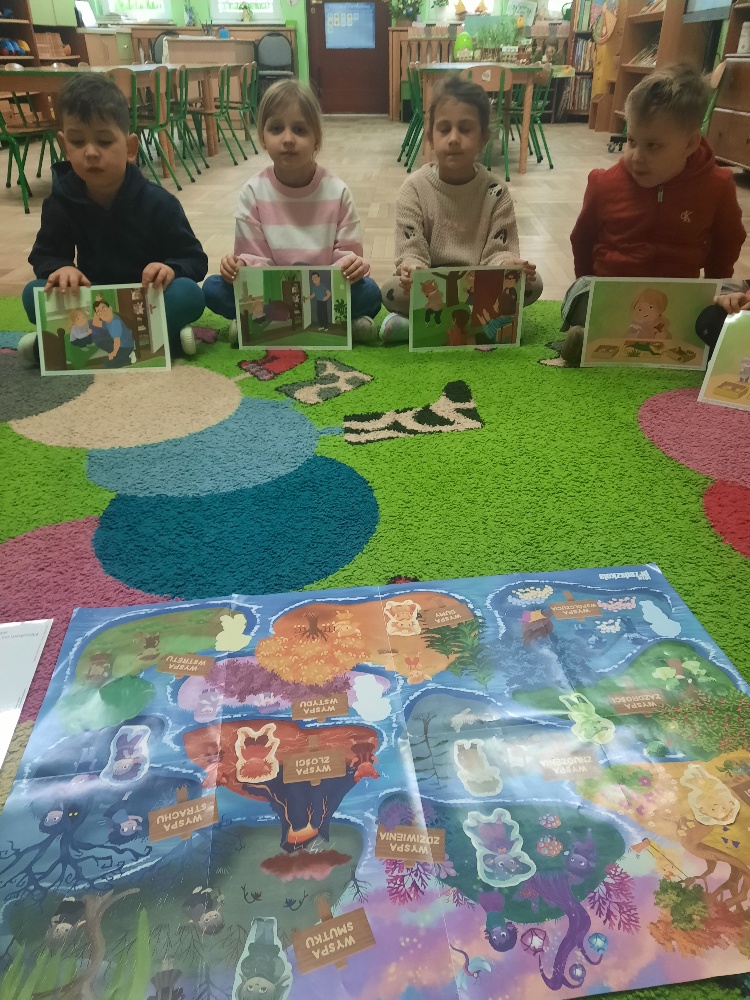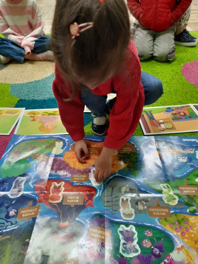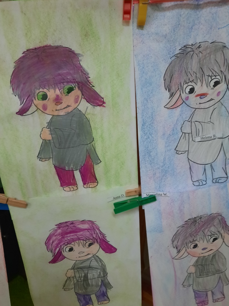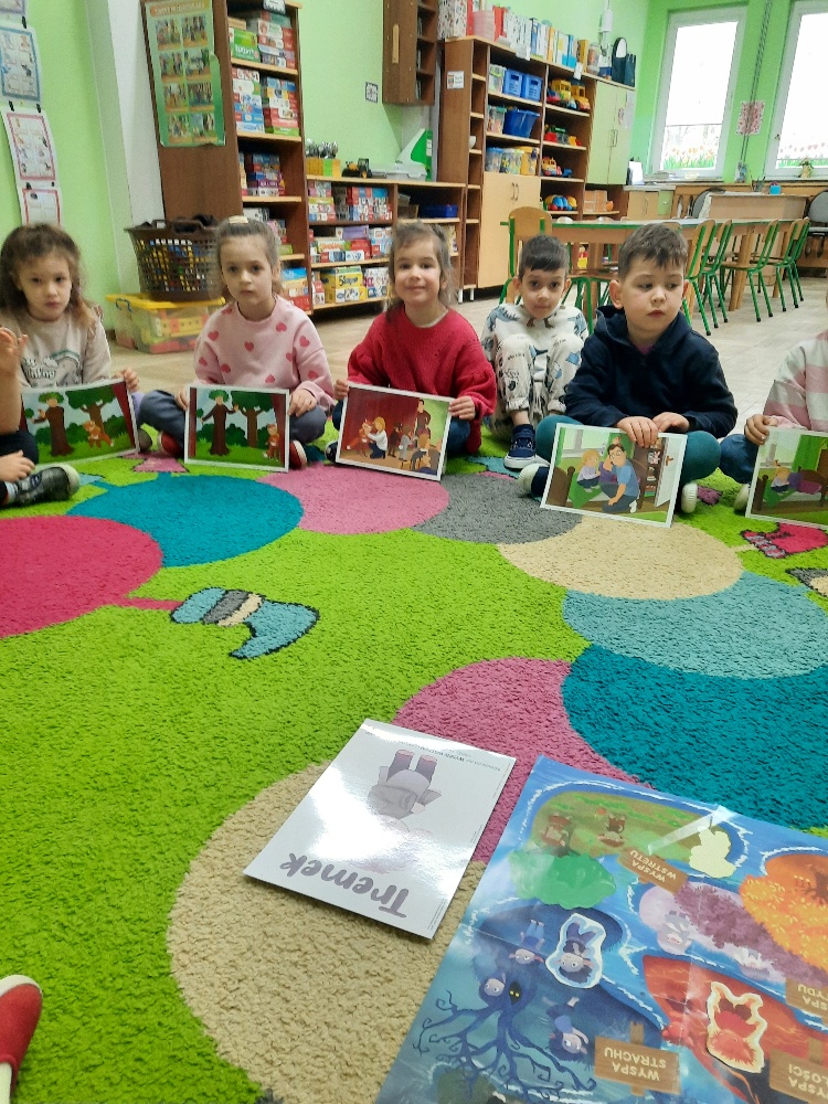 Na dzisiejszym spotkaniu dzieci z naszej grupy poznały nowego Czuciaka – Tremka z wyspy wstydu. Przedszkolaki z uwagą wysłuchały bajki o dziewczynce, która bała się wystąpić w przedstawieniu, a następnie udzielały odpowiedzi na pytania zadawane przez nauczyciela, min. na pytanie: Co sprawiło, że przy Emilce pojawił się Tremek? Tremek pojawił się po to, aby pomóc zrozumieć Emilce i dzieciom, czym jest wstyd i trema. Mądre Sowy przekonały się, że wstyd i trema to podobne uczucia, ale nie takie same. Wstyd pojawia po czymś, co nas zmartwiło albo zawstydziło, a trema przed czymś co jest dla nas ważne. I jedno, i drugie uczucie jest w porządku. Towarzyszy czasami każdemu z nas – i dzieciom i dorosłym. Podczas zajęć rozmawialiśmy o różnych sytuacjach, które mogą wywoływać wstyd oraz tremę. Dzieci chętnie dzieliły się swoimi doświadczeniami. Na zakończenie zajęć pokolorowały postać Tremka i umieściły w wybranym miejscu w sali.
