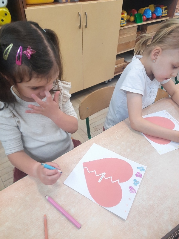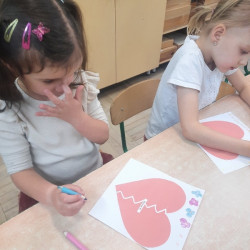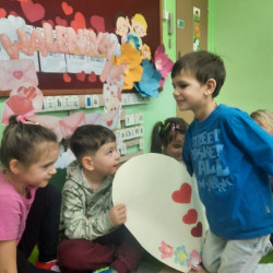 Walentynki to radosne święto mające na celu promowanie życzliwości i przyjaźni wśród dzieci. W piątek 13 lutego przedszkolaki z grupy Mądre Sowy zapoznały się z tradycją „Walentynek” wysłuchując historii o świętym Walentym. Rozmawiały o tym jak można okazywać miłość, przyjaźń oraz szacunek bliskim osobom nie tylko od święta. Brały udział w zabawach tematycznych takich jak: szukanie drugiej połówki serca, układały memory walentynkowe, kolorowały serduszkowe mandale, uczestniczyły w zabawach matematycznych i zabawach z latarką. Wykonywały walentynkowe laurki dla swoich bliskich w domu. Na pamiątkę tego dnia pozowały w specjalnej „Walentynkowej foto -budce”.
