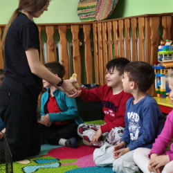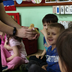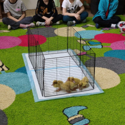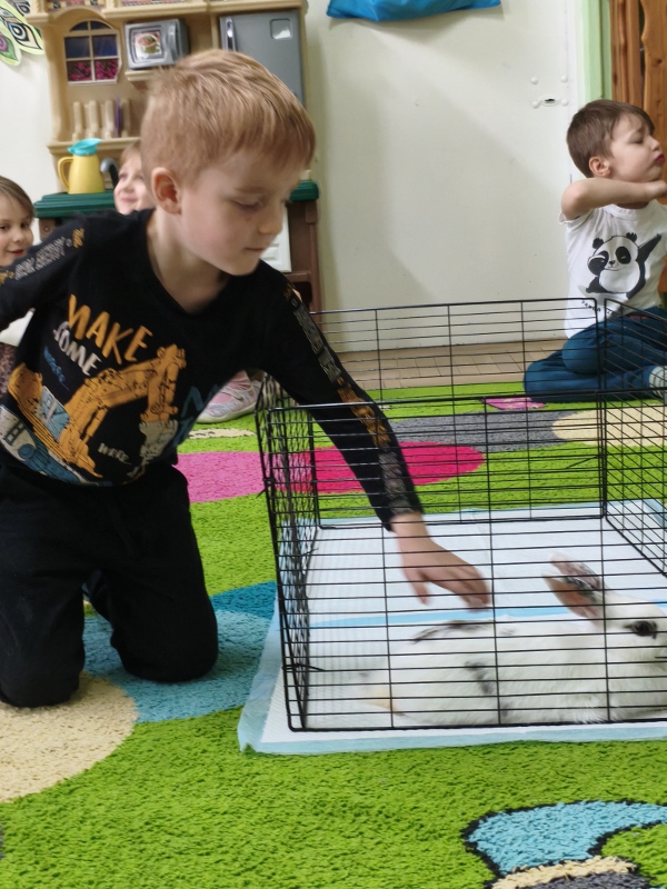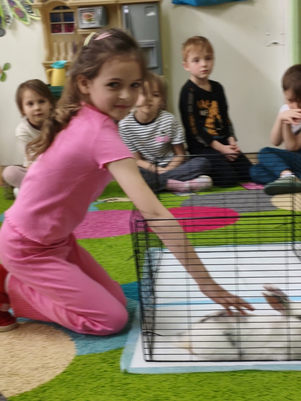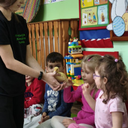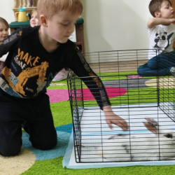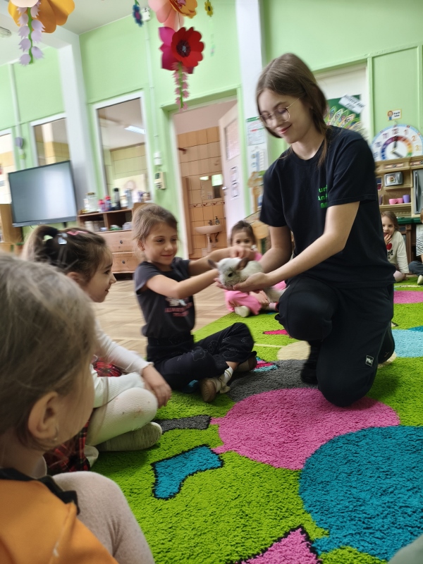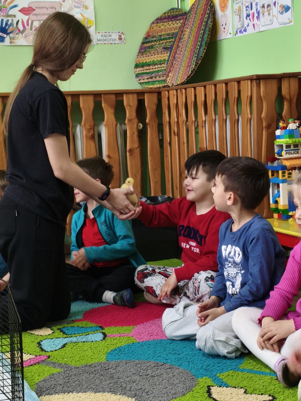 Podczas warsztatów dzieci poznały także urocze kaczuszki oraz przyjaznego króliczka, które równie szybko skradły ich serca. Przedszkolaki mogły je obserwować z bliska, a nawet delikatnie pogłaskać. Dowiedziały się również wielu ciekawostek o ich zwyczajach i sposobie życia.