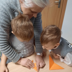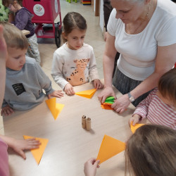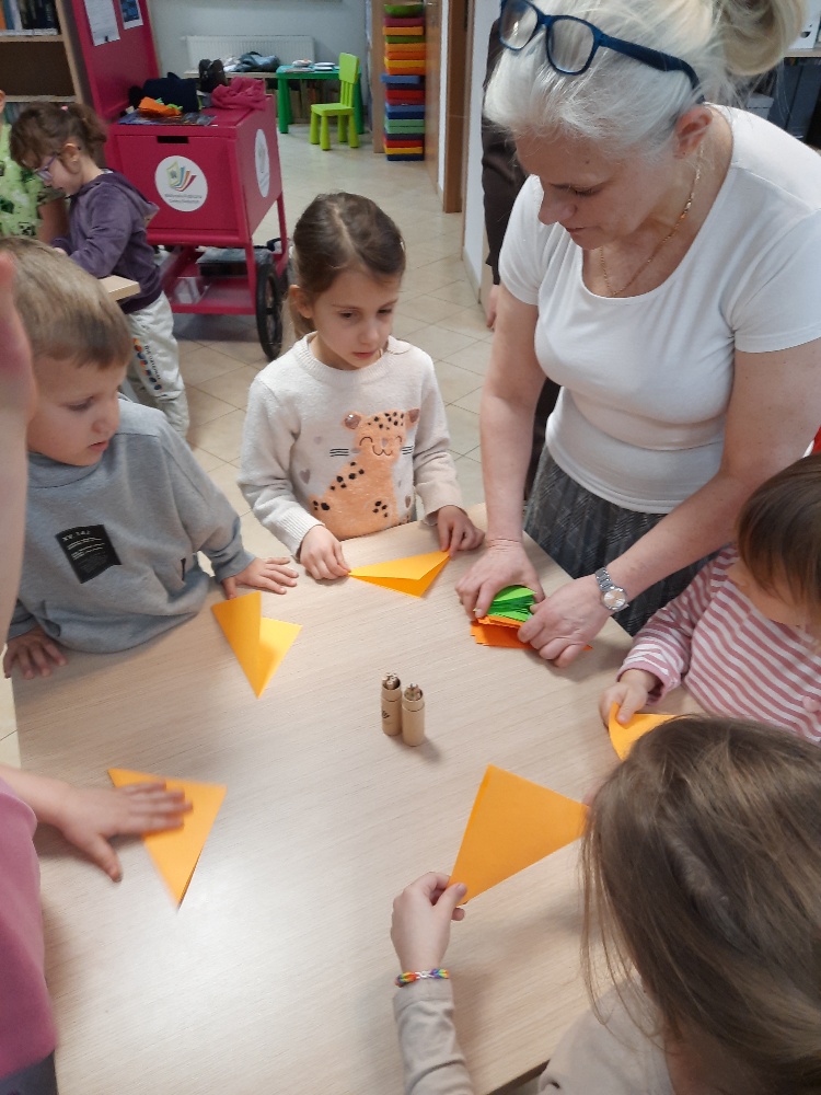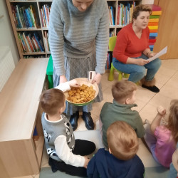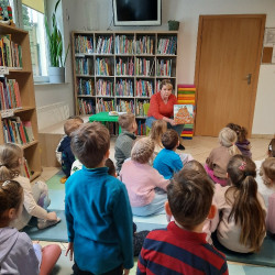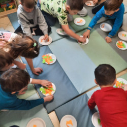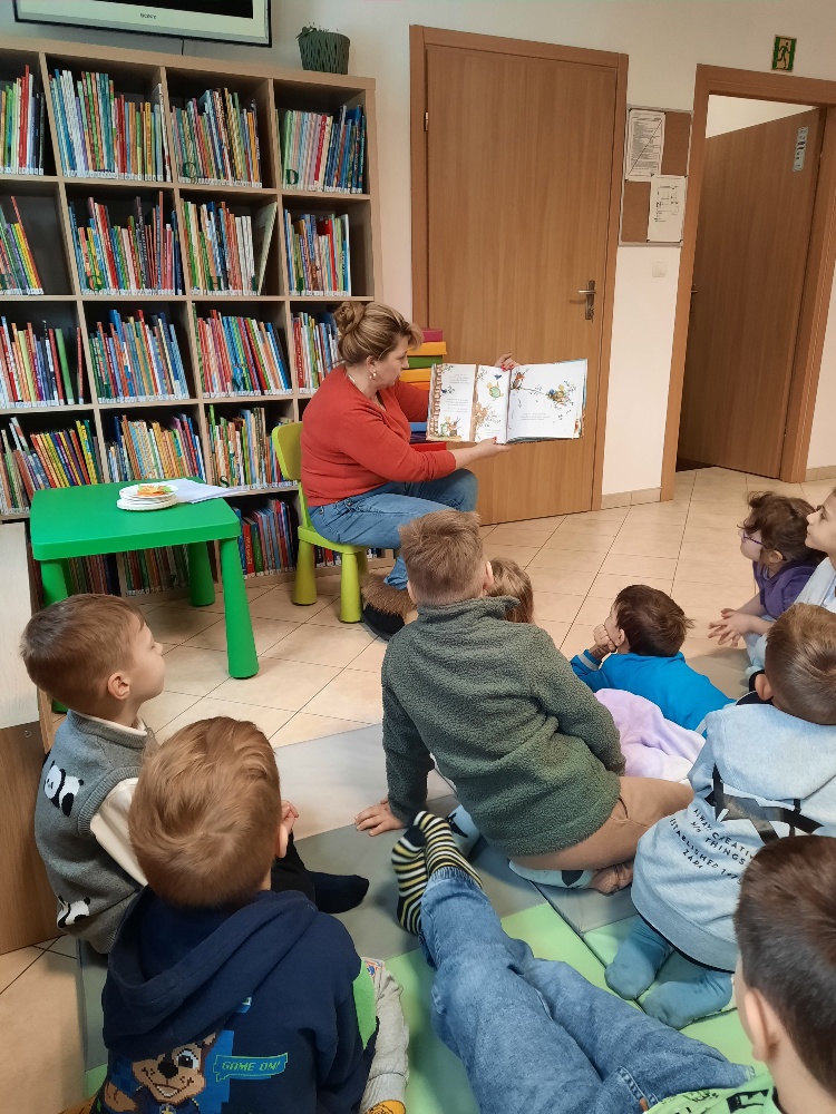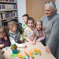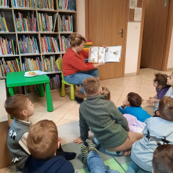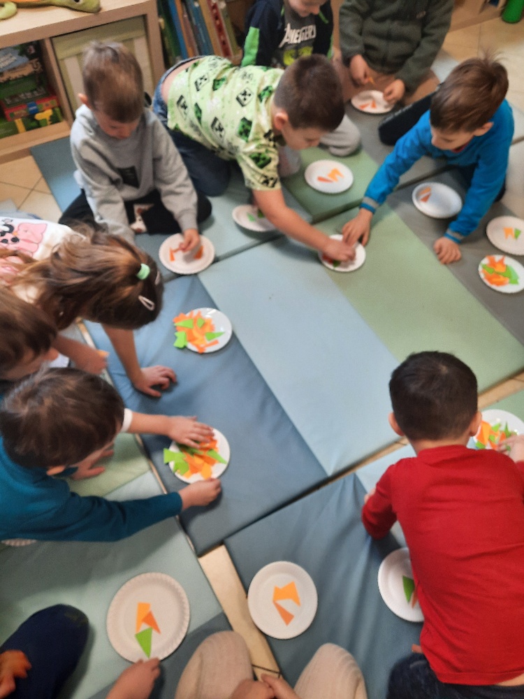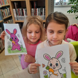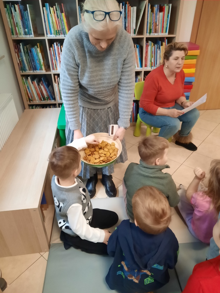 W środę 04.02.26 przedszkolaki wybrały się do biblioteki na zajęcia z okazji nietypowego dnia „Dnia ciasta marchewkowego”. Dzień ten rozpoczęliśmy od wysłuchania opowieści o Króliku z książki Katy Hudson „Za dużo marchewek”. Dowiadujemy się z niej., że króliczek zgromadził w swoim domku za dużo marchewek, więc postanawia poszukać dla swojego przysmaku nowego miejsca. Przyjaciele użyczali mu swoich domków, które za każdym razem ulegały zniszczeniu wobec nadmiaru słodkiego pomarańczowego warzywa. Królik zrozumiał, że rozwiązaniem jego dużego problemu jest podzielenie się marchewkami z innymi. Książka była inspiracją do rozmów na temat zdrowego odżywiania, a także do twórczych aktywności plastycznych. Uczestnicy zajęć wspólnie z panią Basią wykonali marchewki metodą origami, kolorowali postać króliczka i próbowali pysznych marchewkowych ciasteczek z ziarnami. Dzieci wróciły do przedszkola z uśmiechami na twarzy. Zajęcia były jak zwykle pouczające. Tego dnia nauczyliśmy się że przyjaźń i dzielenie się z innymi są ważniejsze niż gromadzenie dóbr.