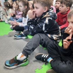W poniedziałek 27 kwietnia dzieci z grupy Mądre Sowy na zaproszenie nauczycieli i kolegów z zerówki szkolnej wybrały się do szkoły Podstawowej w Młochowie. Celem wizyty było obejrzenie spektaklu przygotowanego przez grupy „0” pt. W krainie Jana Brzechwy”. Starsi koledzy z dumą zaprezentowali swoje umiejętności aktorskie przedstawiając znane dzieciom wiersze Jana Brzechwy – „ZOO” i „Na straganie”. Drugim celem naszej wizyty była możliwość zapoznania dzieci z budynkiem szkoły ( salami zabaw, placem zabaw, stołówką), a także integracja przedszkolaków i dzieci szkolnych. Przedszkolaki mogły pobawić się ze swoimi starszymi kolegami, z których większość jest absolwentami naszego przedszkola. Było to więc spotkanie bardzo miłe i sentymentalne. Mądre Sowy otrzymały na koniec spotkania zdrowe lizaki, kolorowanki i magiczne diamenty. Bardzo dziękujemy Pani Dyrektor i Nauczycielkom z grup „0” za zaproszenie i bardzo miłe przyjęcie.