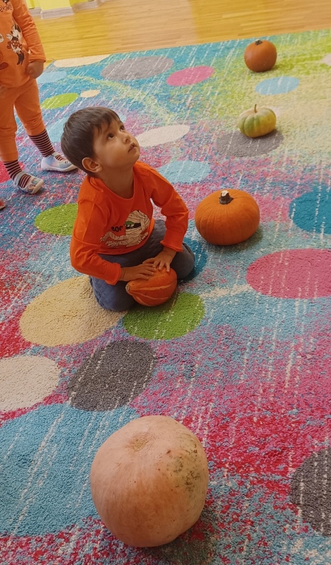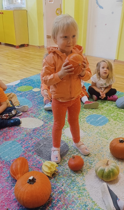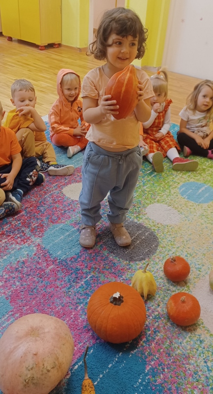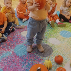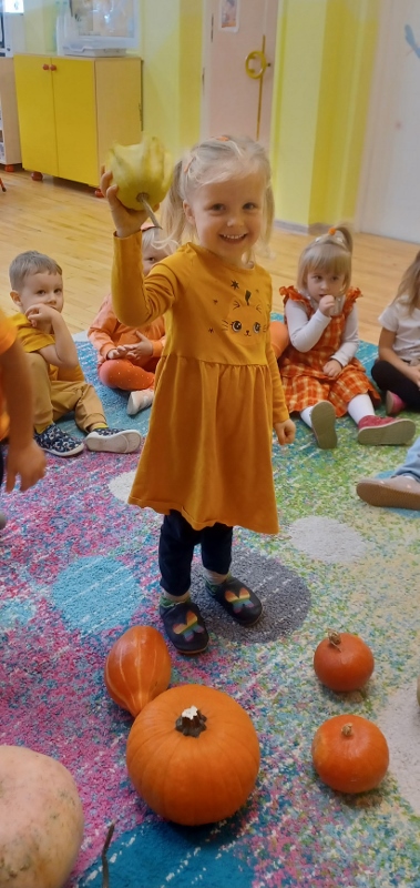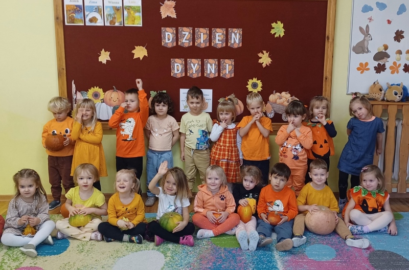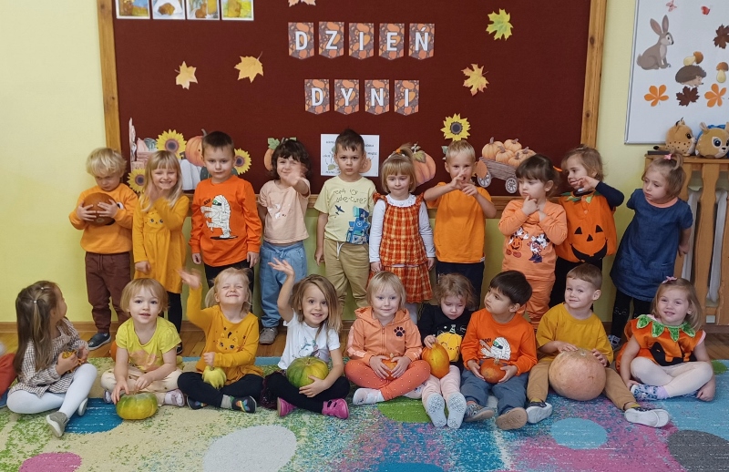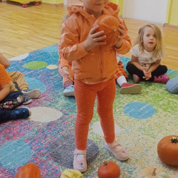 Tego dnia wszystko kręciło się wokół dyni – jej kolorów, kształtów i smaków. Dzieci miały okazję poznać różne odmiany dyni, porównać ich wielkość, kształt i ciężar, a także sprawdzić, co kryje się w środku.