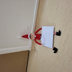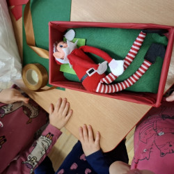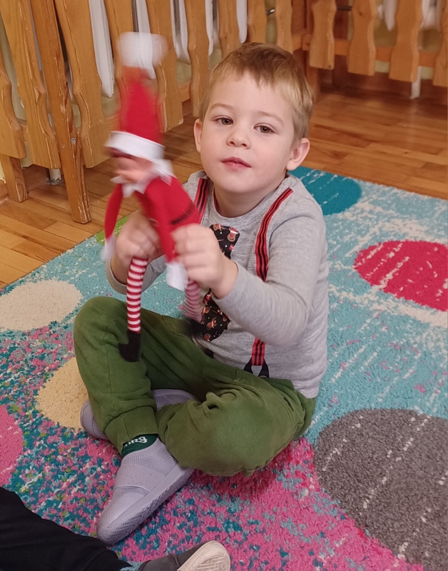 Do naszej przedszkolnej sali zawitał wyjątkowy gość — Elf Psotnik! Dzieci z grupy „Pszczółki" znalazły go tuż pod drzwiami, wraz z listem od Świętego Mikołaja. W liście Mikołaj poprosił przedszkolaków, aby zaopiekowały się elfem podczas jego pobytu w naszym przedszkolu.