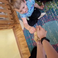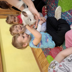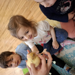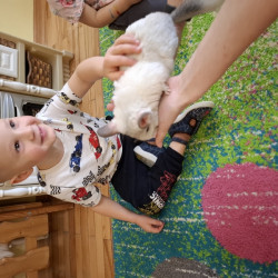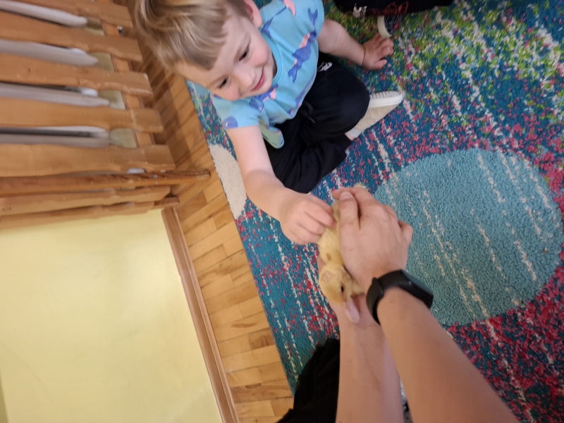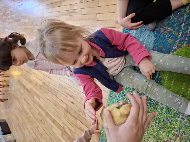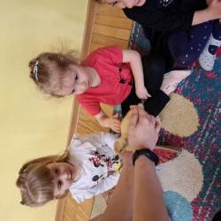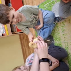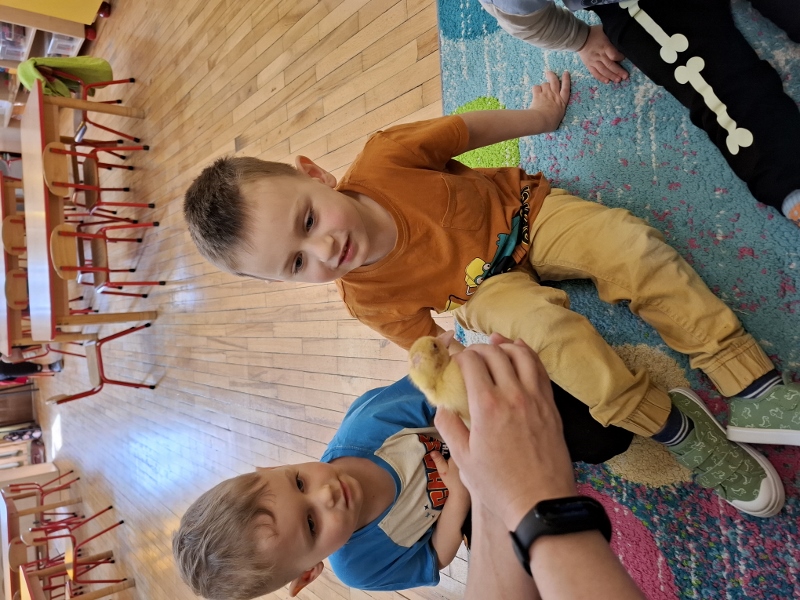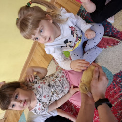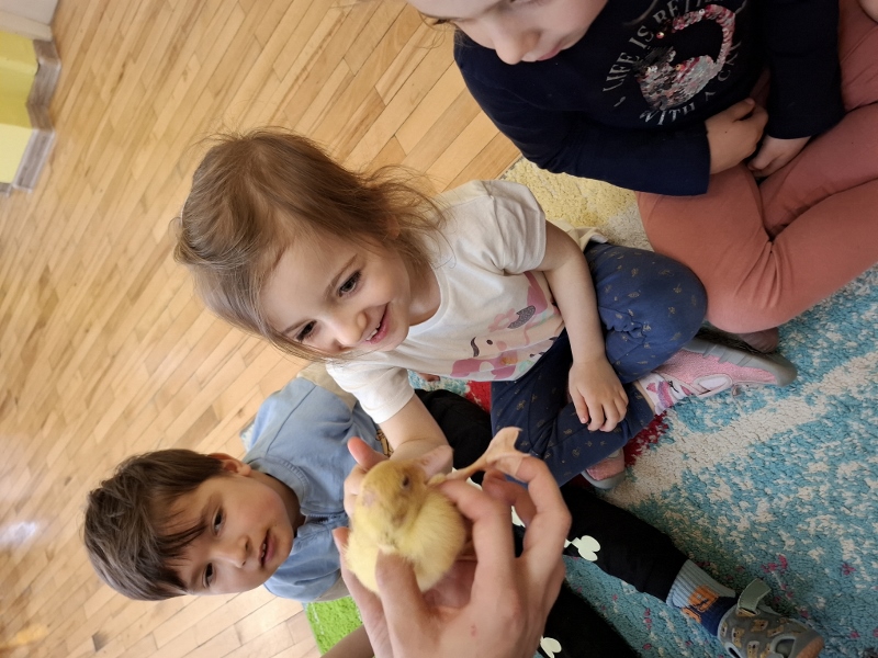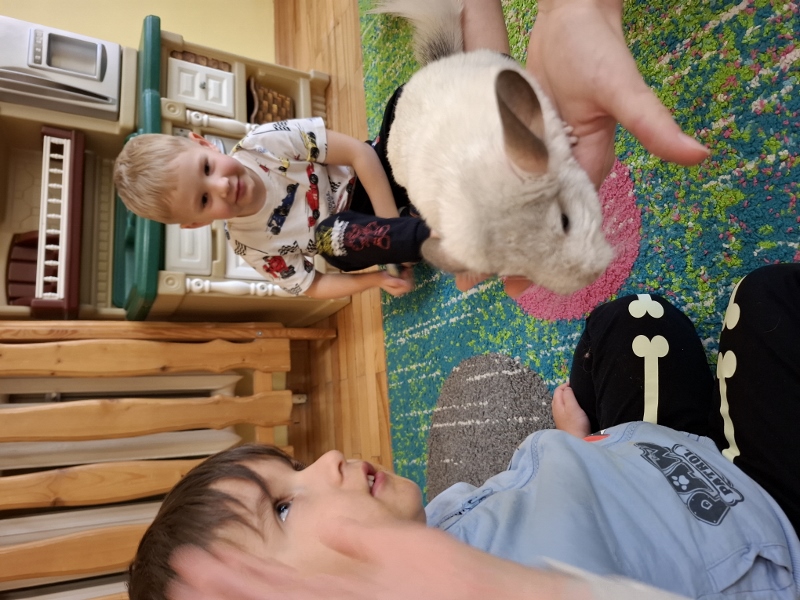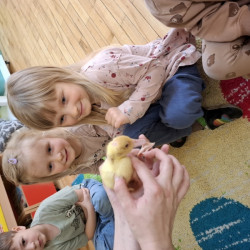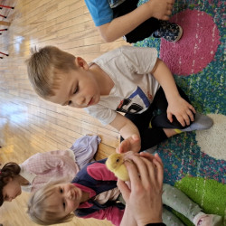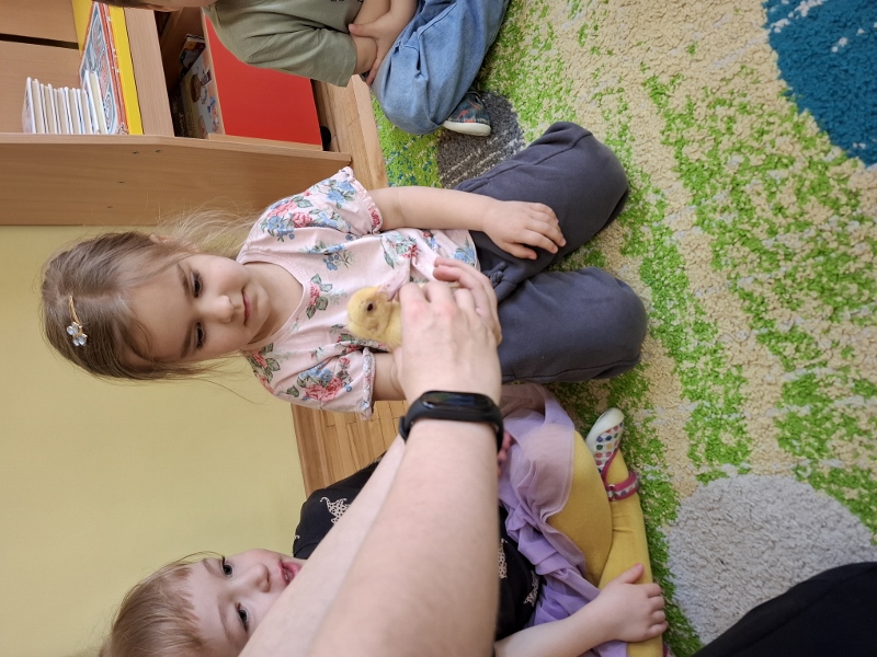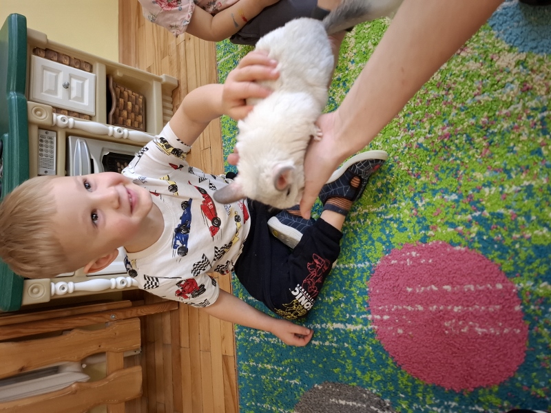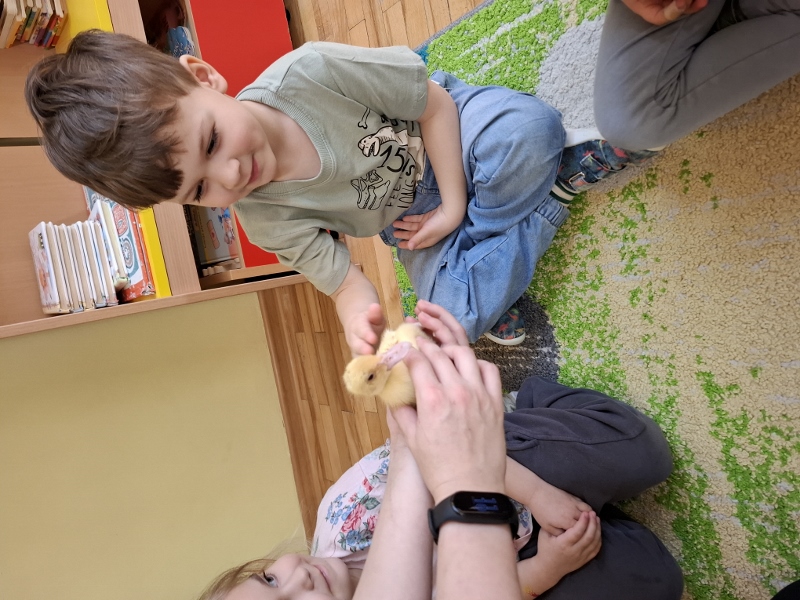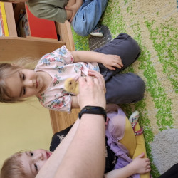 W naszej najmłodszej grupie „Pszczółki" odbyły się wyjątkowe warsztaty wielkanocne z udziałem zwierząt. Dzieci miały okazję poznać bliżej kaczuszki, królika oraz szynszyla.