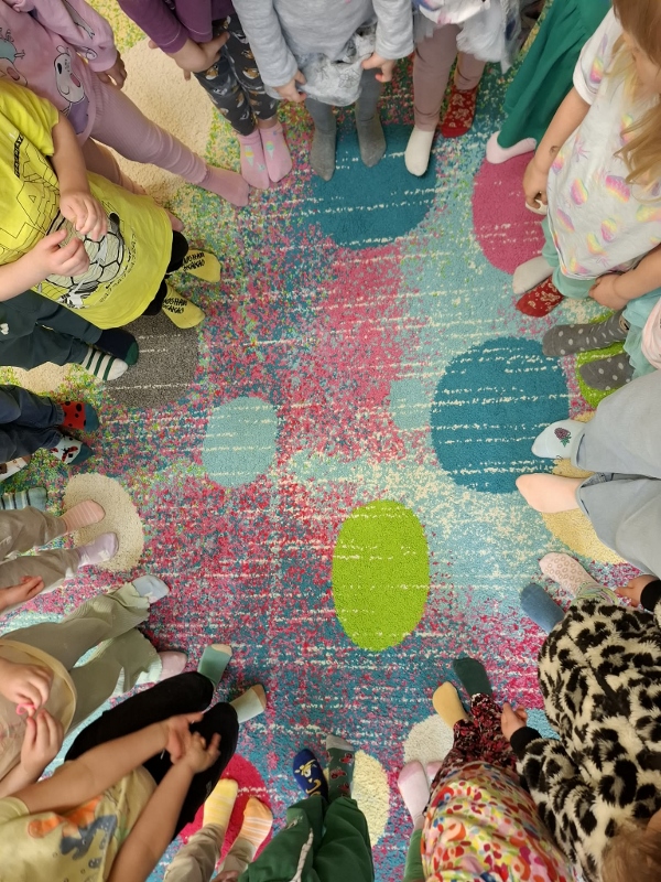 Dodatkowo, tego samego dnia dzieci przyszły do przedszkola w dwóch różnych skarpetkach. Ten wyjątkowy gest miał na celu okazanie solidarności z dziećmi z zespołem Downa oraz podkreślenie, jak ważna jest akceptacja, różnorodność i wzajemny szacunek. Dzięki temu wydarzeniu dzieci nie tylko świetnie się bawiły, ale również uczyły się empatii i otwartości na innych.