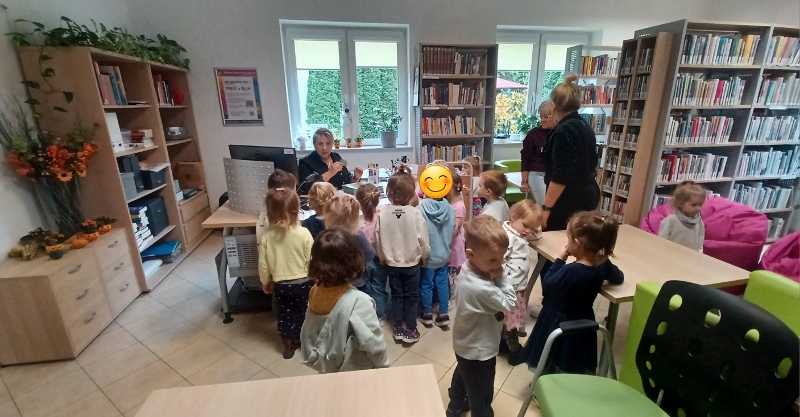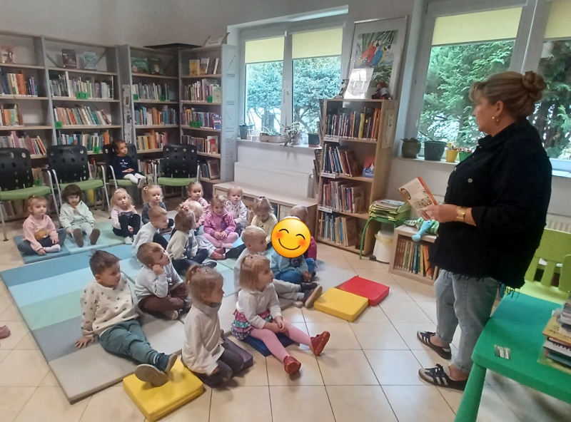 17 października dzieci z grupy Pszczółki odwiedziły bibliotekę. Na miejscu czekała na Nas pani Mirka, która jest bibliotekarzem. Dzieci dowiedziały się, jak funkcjonuje biblioteka, jak się do niej zapisać oraz jak szanować książki. Wysłuchały opowiadania o lisku Fenku, który tak jak nasze przedszkolaki znalazł się po raz pierwszy w bibliotece.