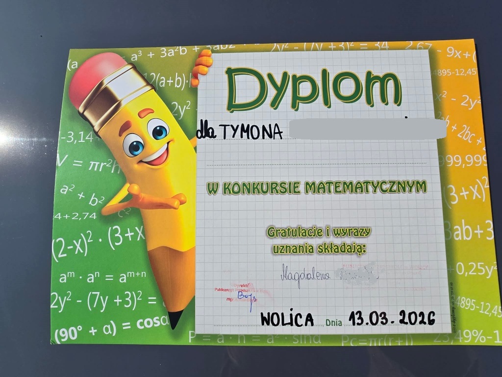 Nasz pięcioletni uczestnik wśród większości sześciolatków z dużym skupieniem podchodził do kolejnych zadań. Choć konkurs był dla niego nowym doświadczeniem, poradził sobie bardzo dobrze. Wykazał się nie tylko wiedzą matematyczną, ale także cierpliwością, samodzielnością i odwagą. Sam udział w wydarzeniu był dla niego ogromnym przeżyciem i powodem do dumy. Tymciu, jeszcze raz gratulujemy i mamy nadzieję że konkurs stanie się początkiem dalszej przygody z matematyką!
